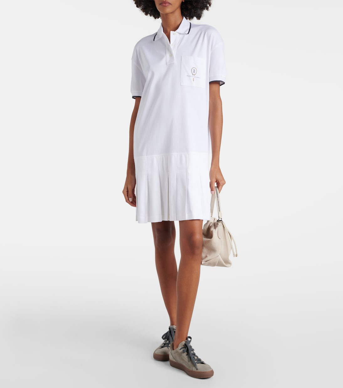 Платье-поло из плиссированного хлопка Brunello Cucinelli, Bianco