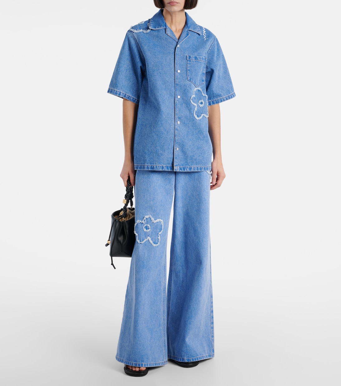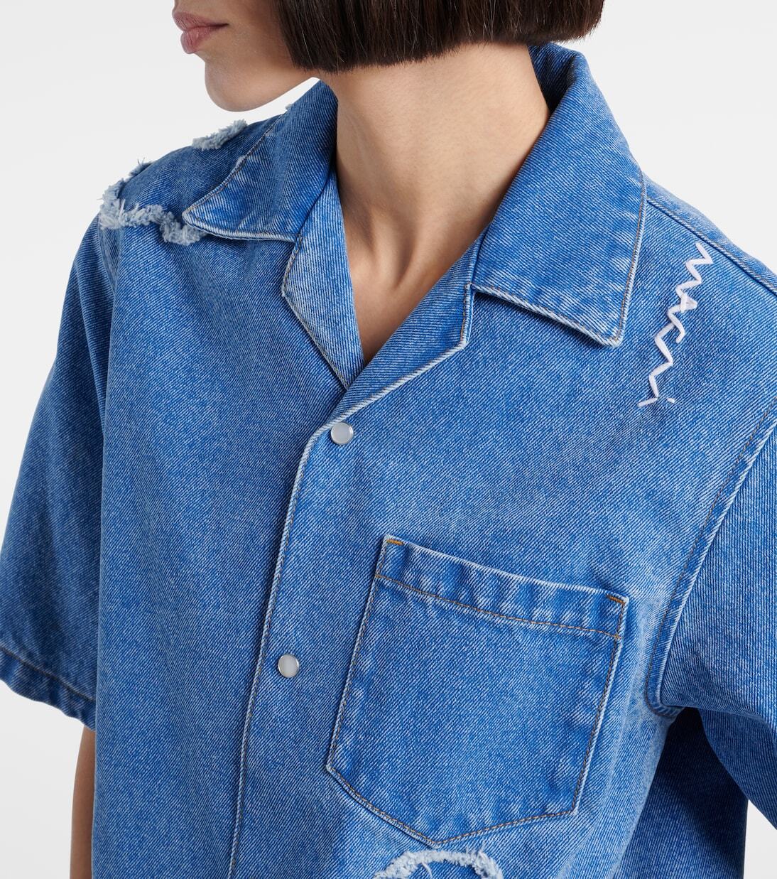 Джинсовая рубашка с цветочной вышивкой Marni, Cobalt