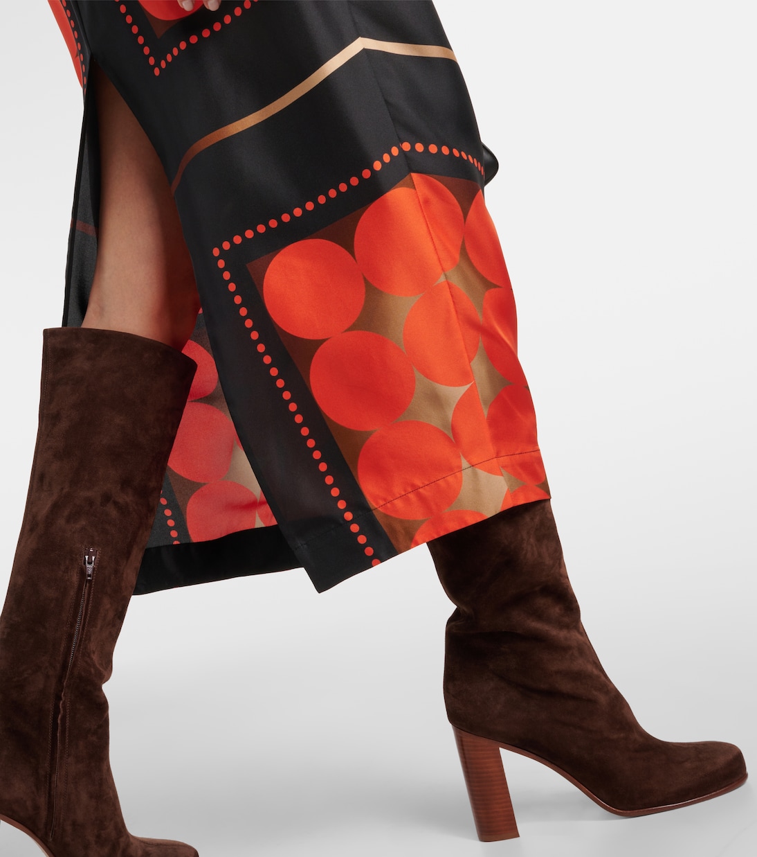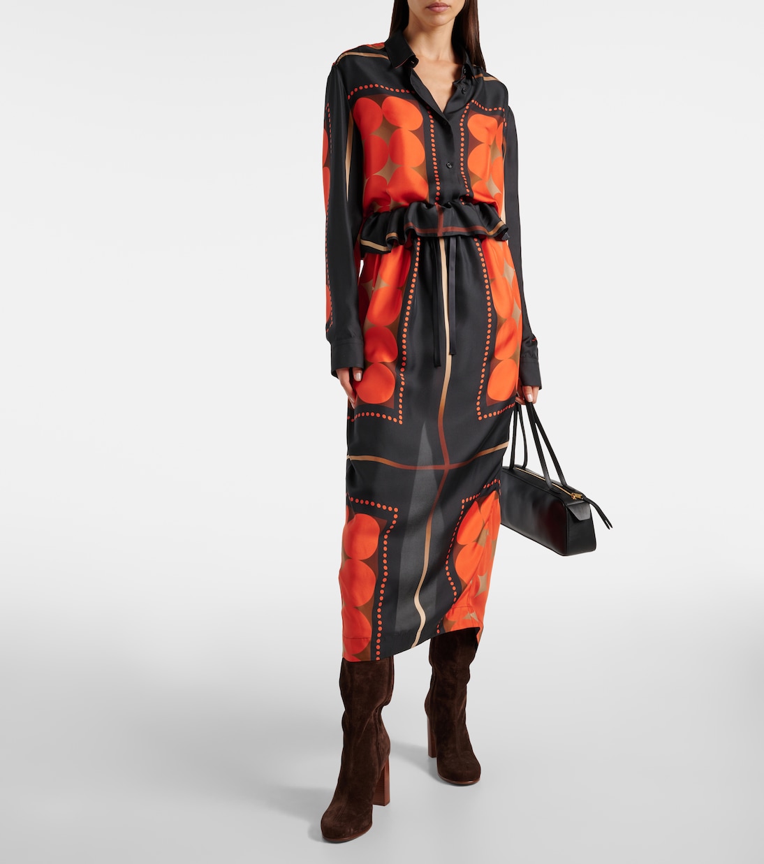 Юбка макси из шелка с принтом Lilila Khaite, Orange Multi