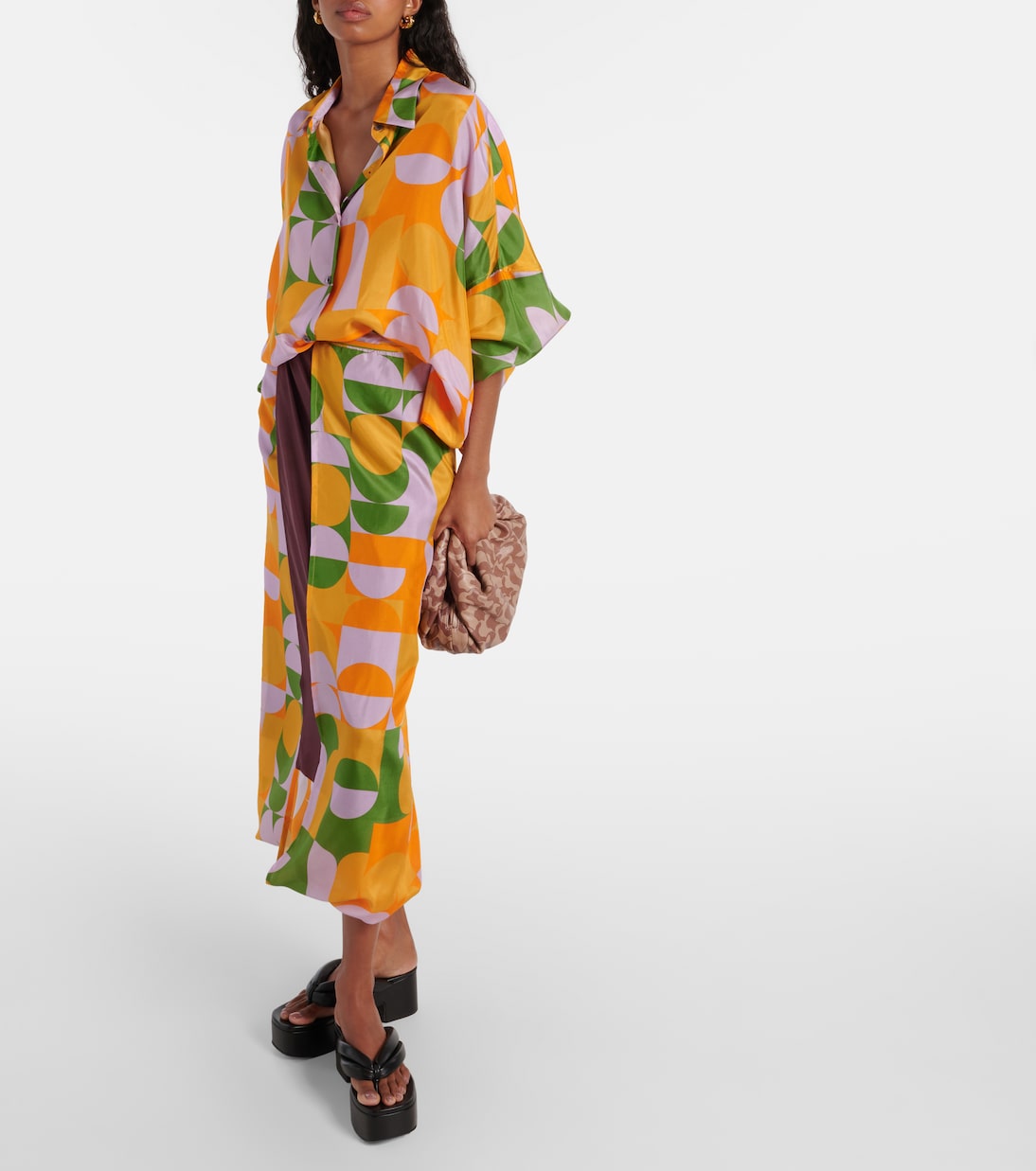 Шелковая рубашка с принтом Dries Van Noten, оранжевый