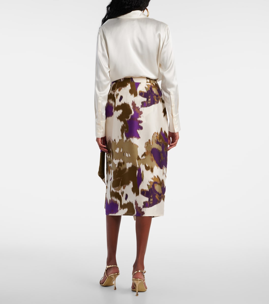 Юбка-халат из шелка с принтом Dritto Max Mara, Avorio