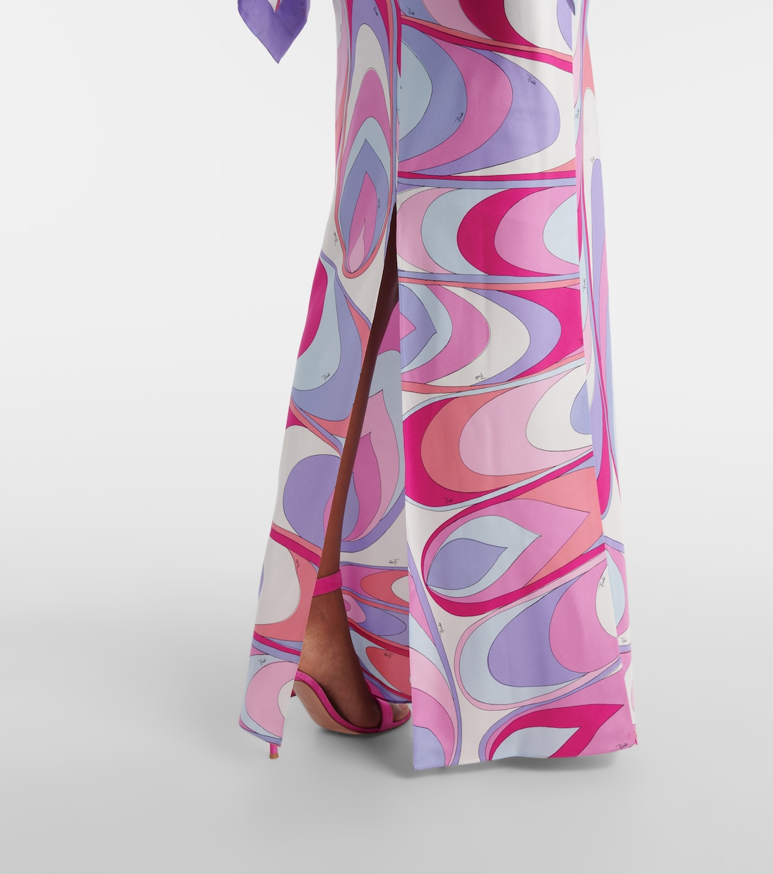 Платье макси из шелкового твила с принтом Pucci, розовый