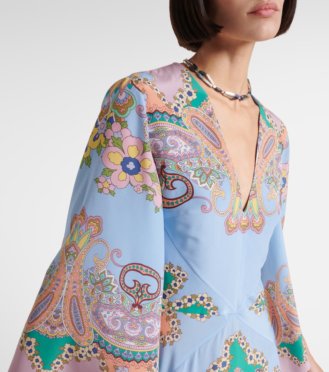 Платье макси из шелкового крепдешина с узором пейсли Etro, Print On Pink Base