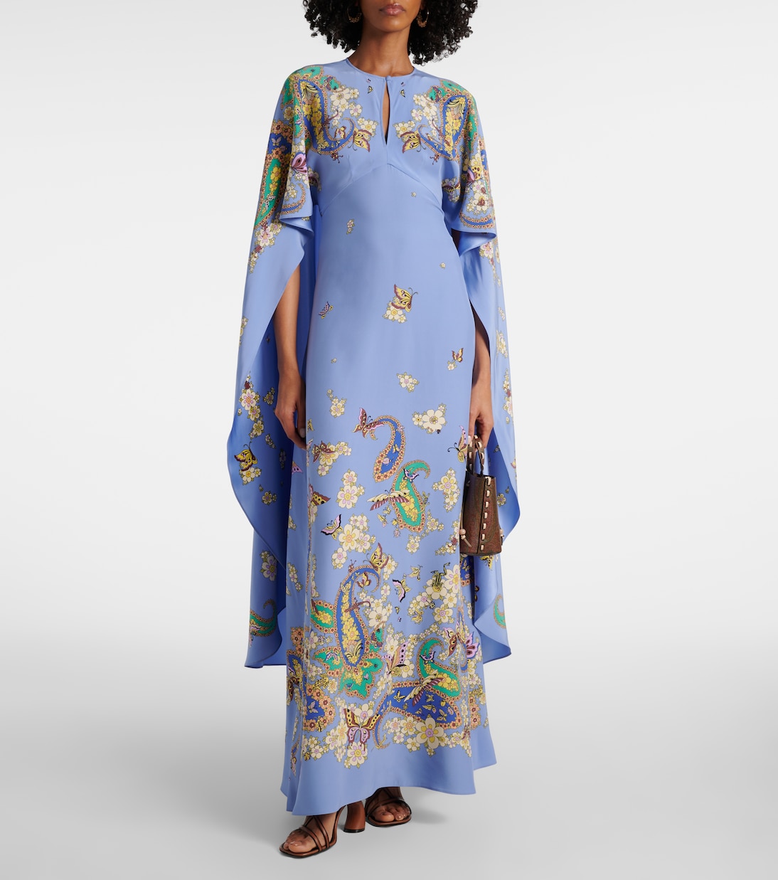 Шелковое платье с цветочным узором пейсли Etro, Print On Blue Base