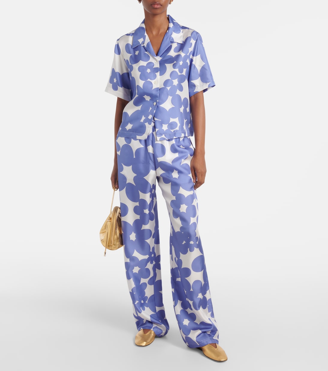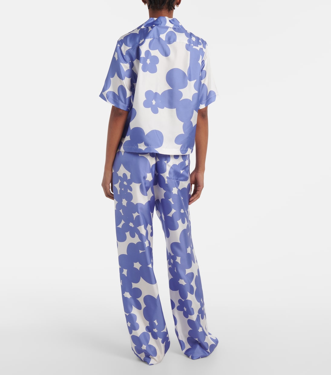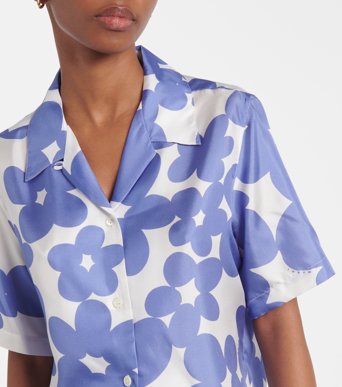 Шелковая рубашка с цветочным принтом Marni, Blue Lilac