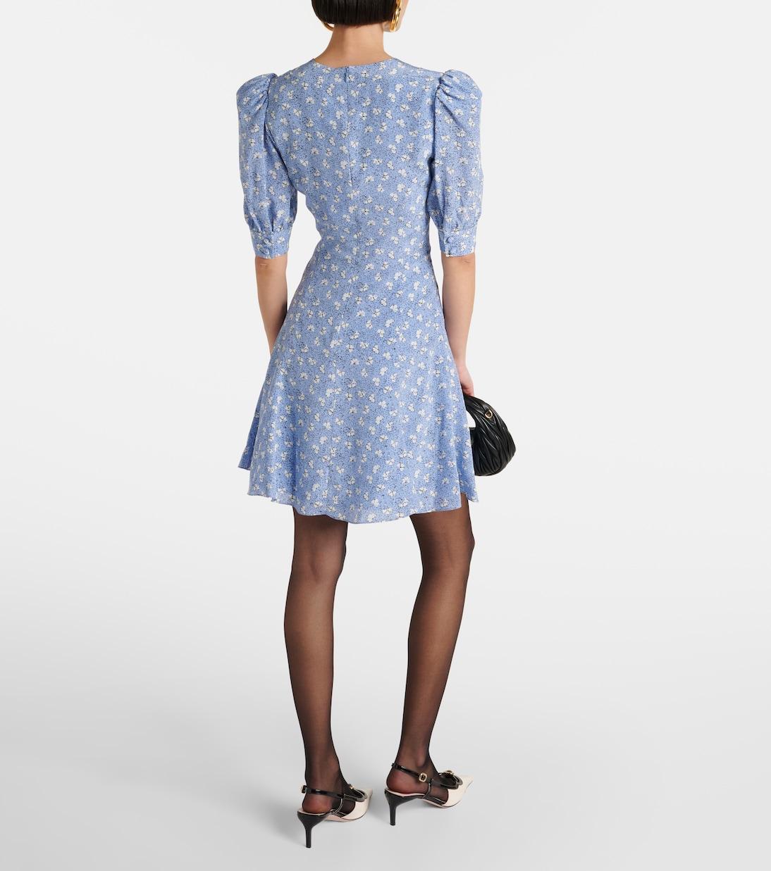 Мини-платье из шелка с принтом и бантом Alessandra Rich, синий