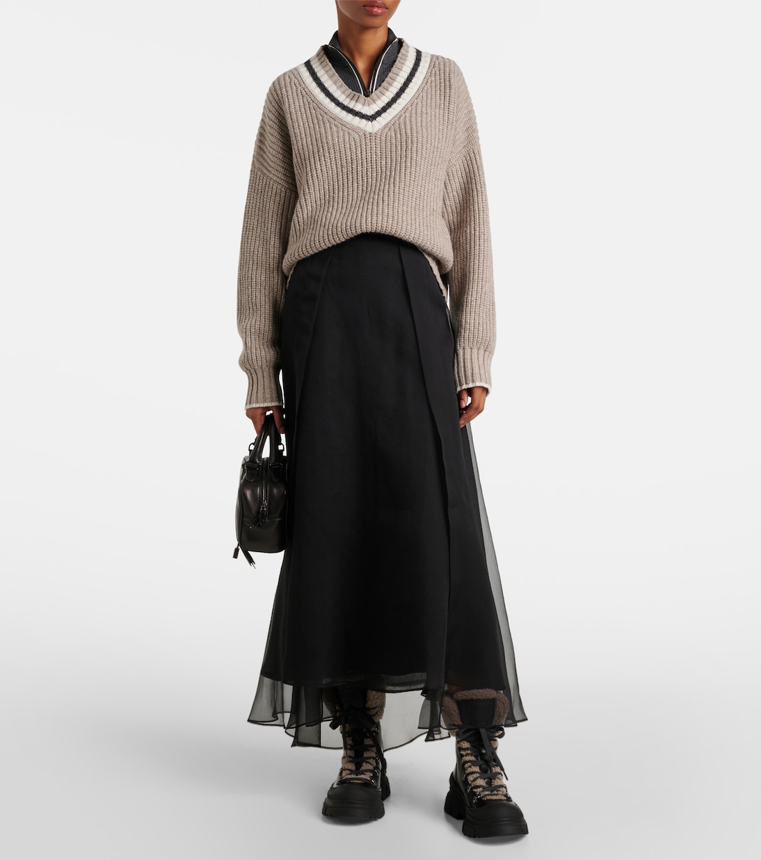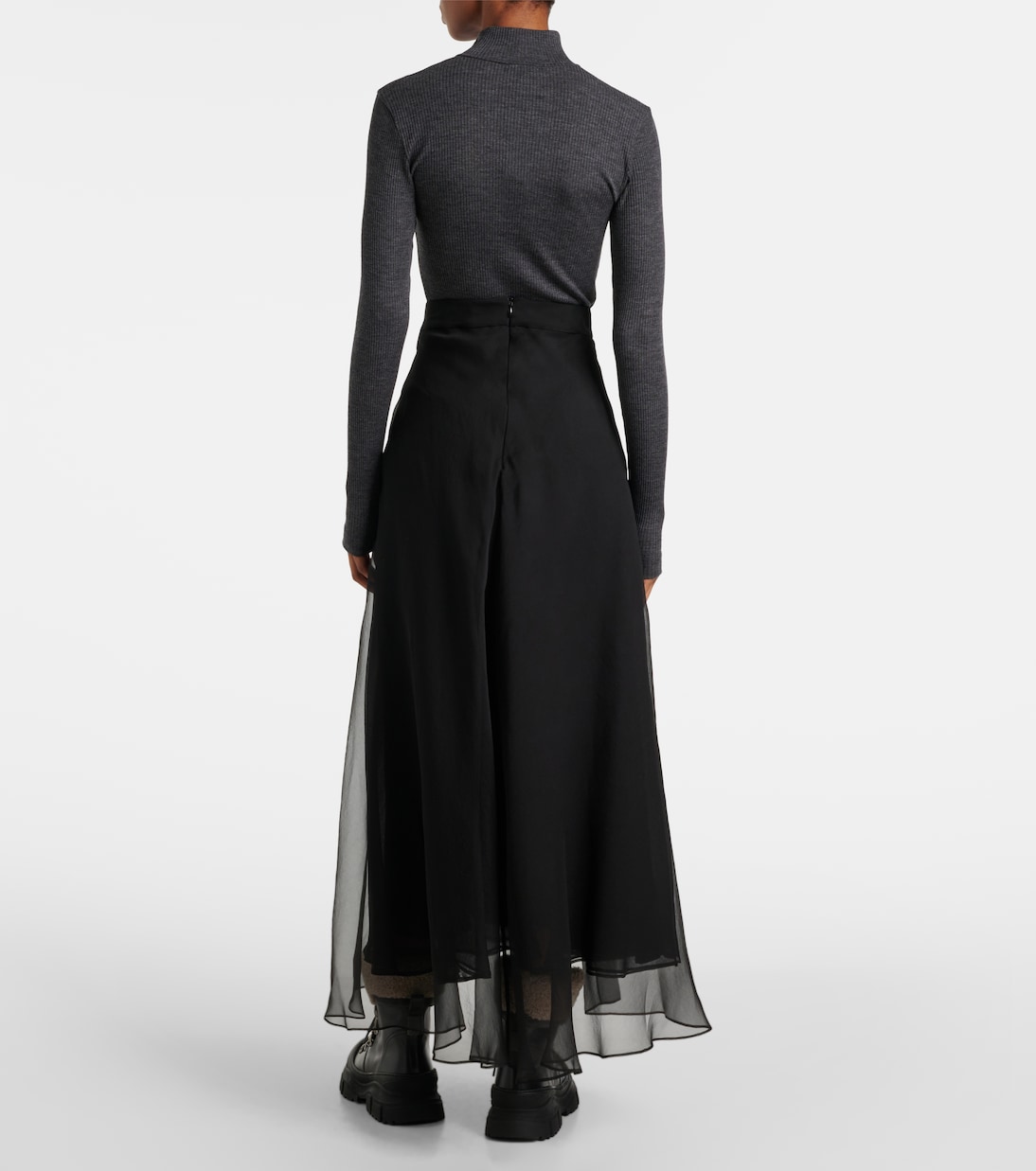 Шелковая юбка миди Brunello Cucinelli, черный