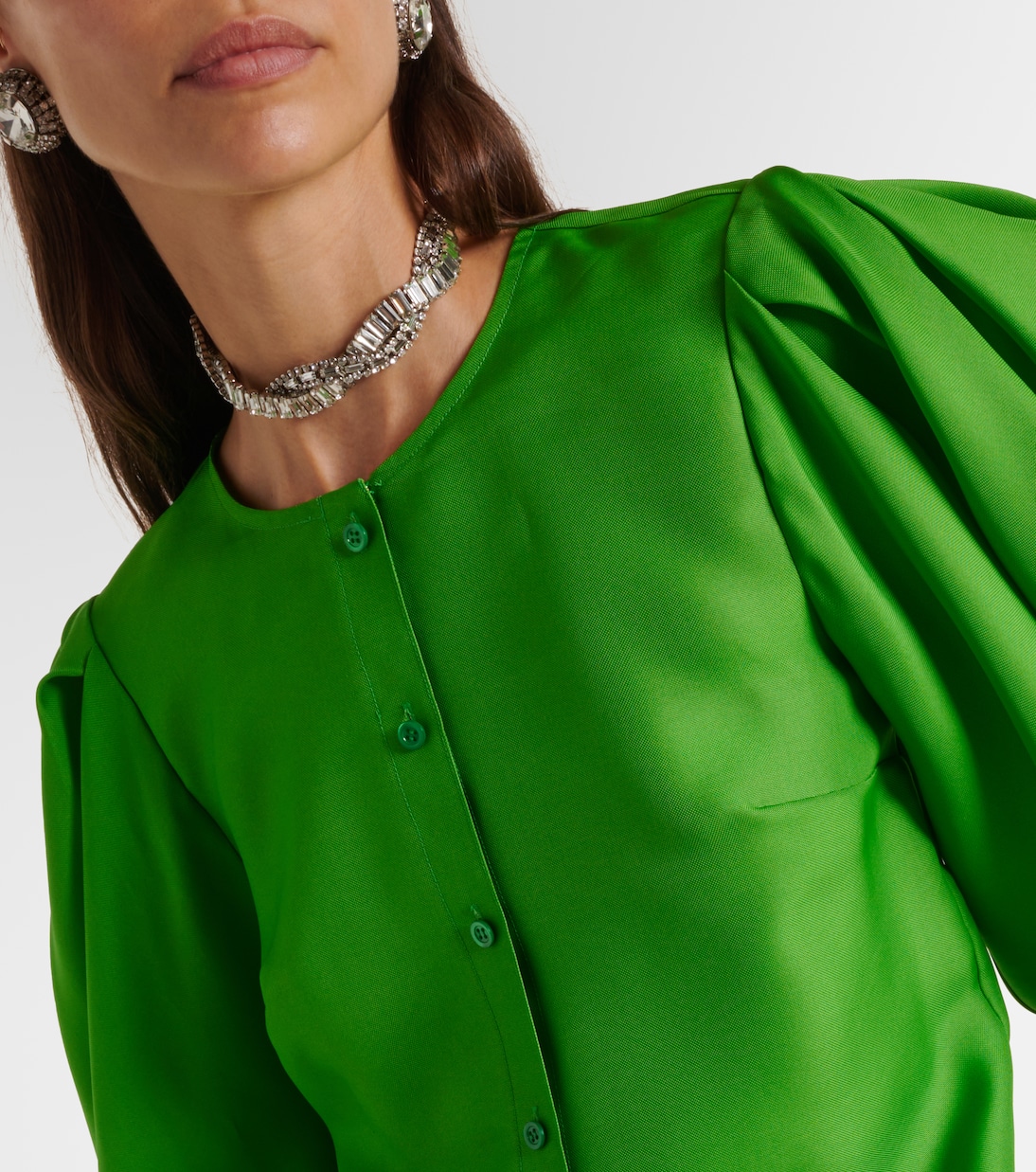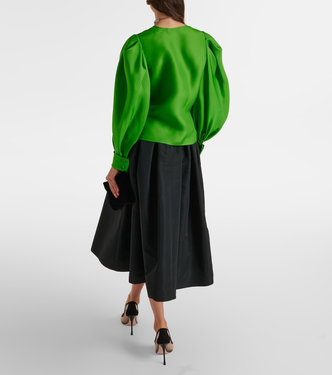 Шелковая блузка с рукавами-буфами Carolina Herrera, Grasshopper