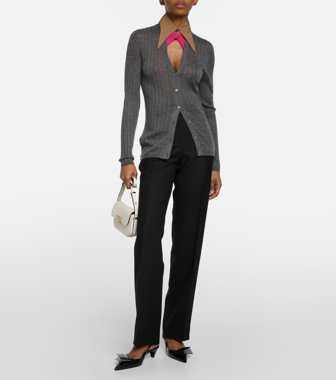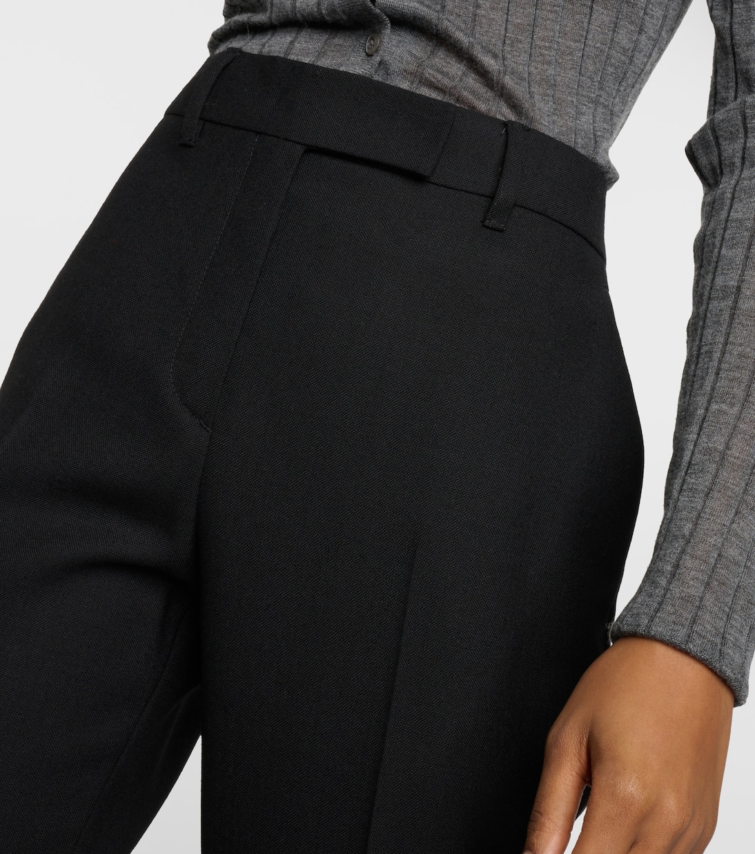 Прямые шерстяные брюки с высокой талией Prada, Nero