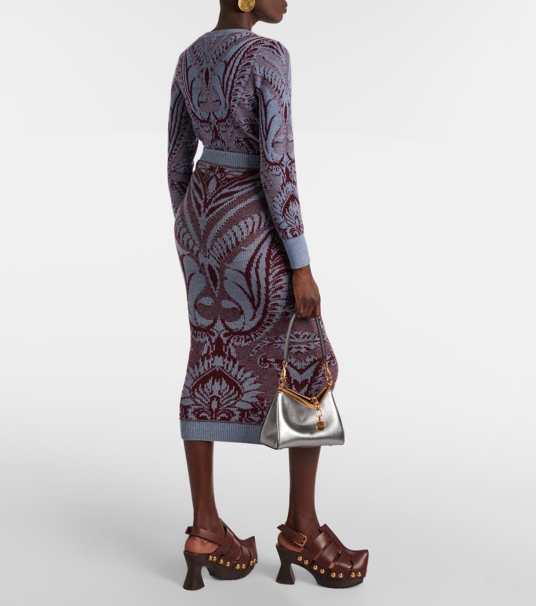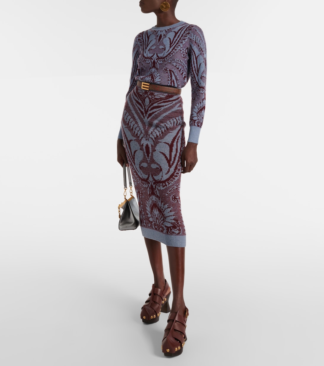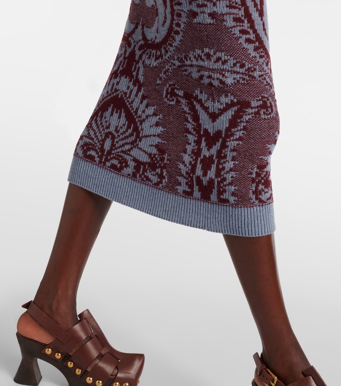 Юбка миди из шерстяного жаккарда Etro, Multicolour On White Base