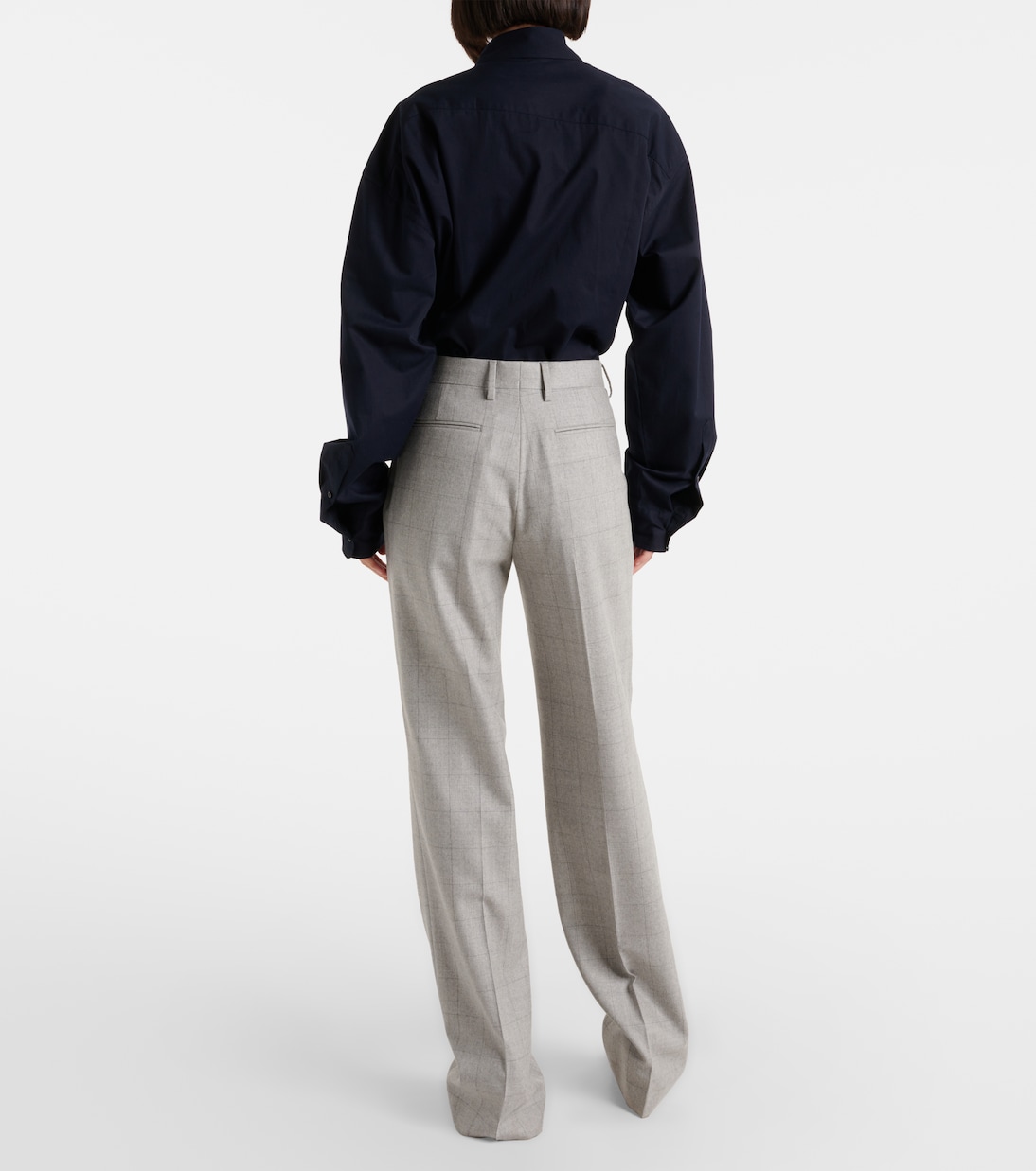 Прямые брюки из шерсти в клетку Dries Van Noten, Light Grey