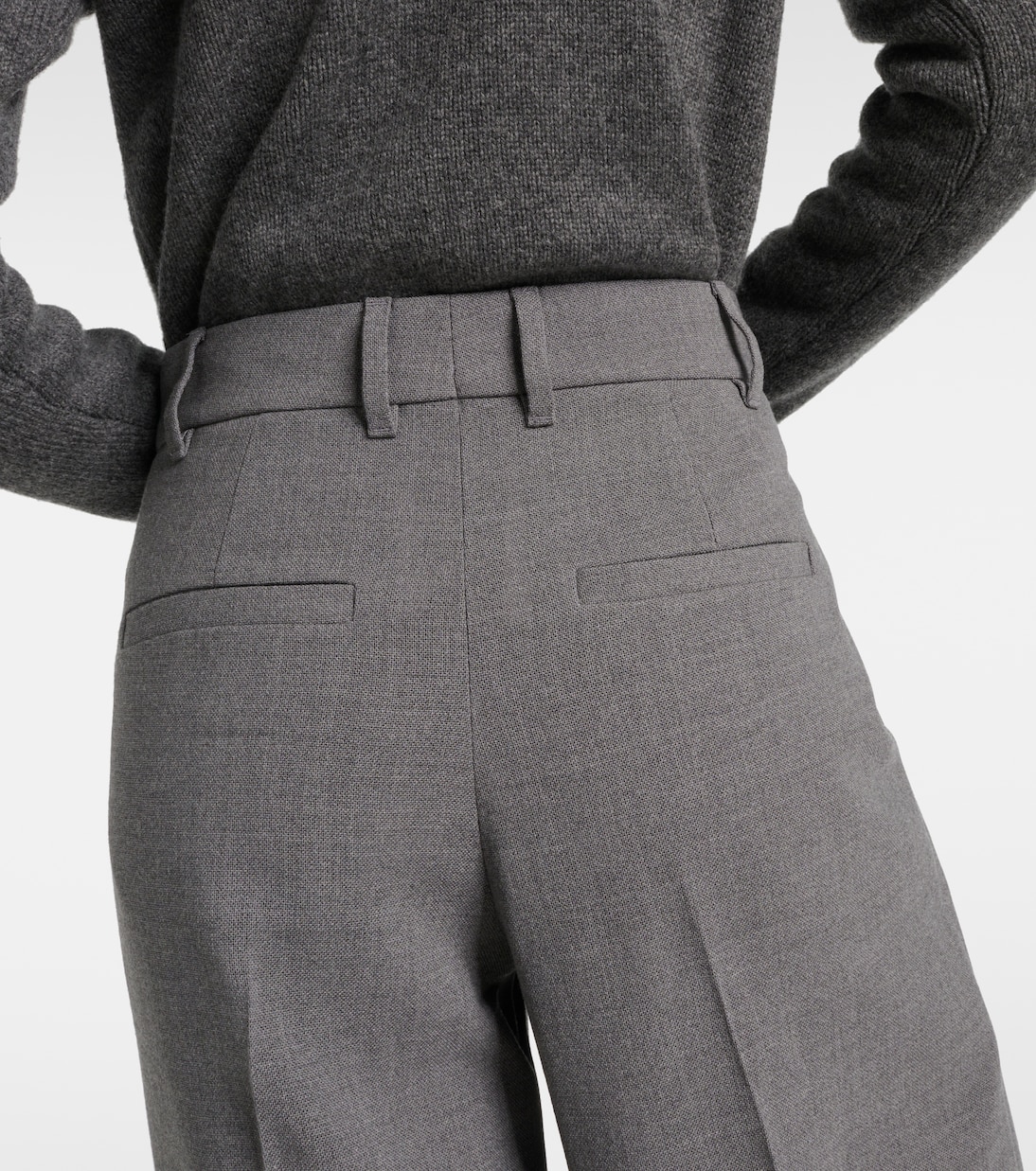 Шерстяные брюки широкого кроя Brunello Cucinelli, Grigio Chiaro 155 481₽