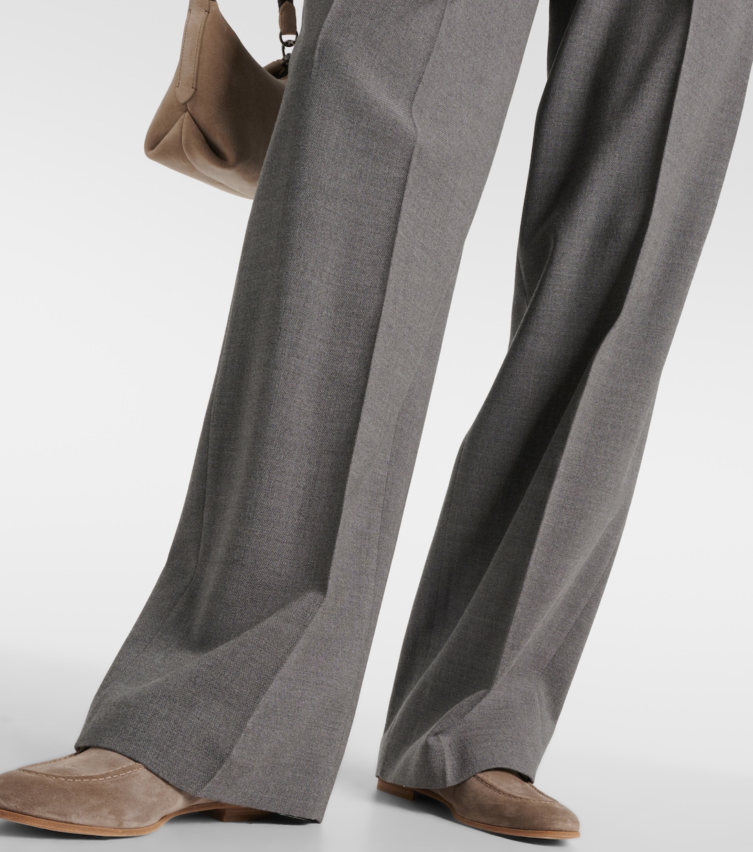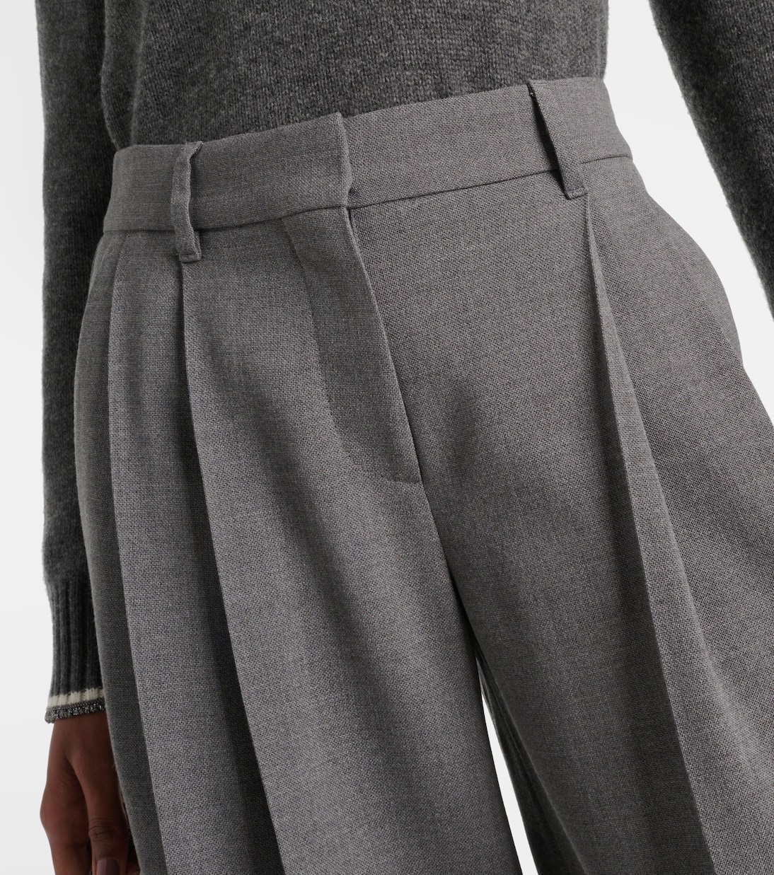 Шерстяные брюки широкого кроя Brunello Cucinelli, Grigio Chiaro