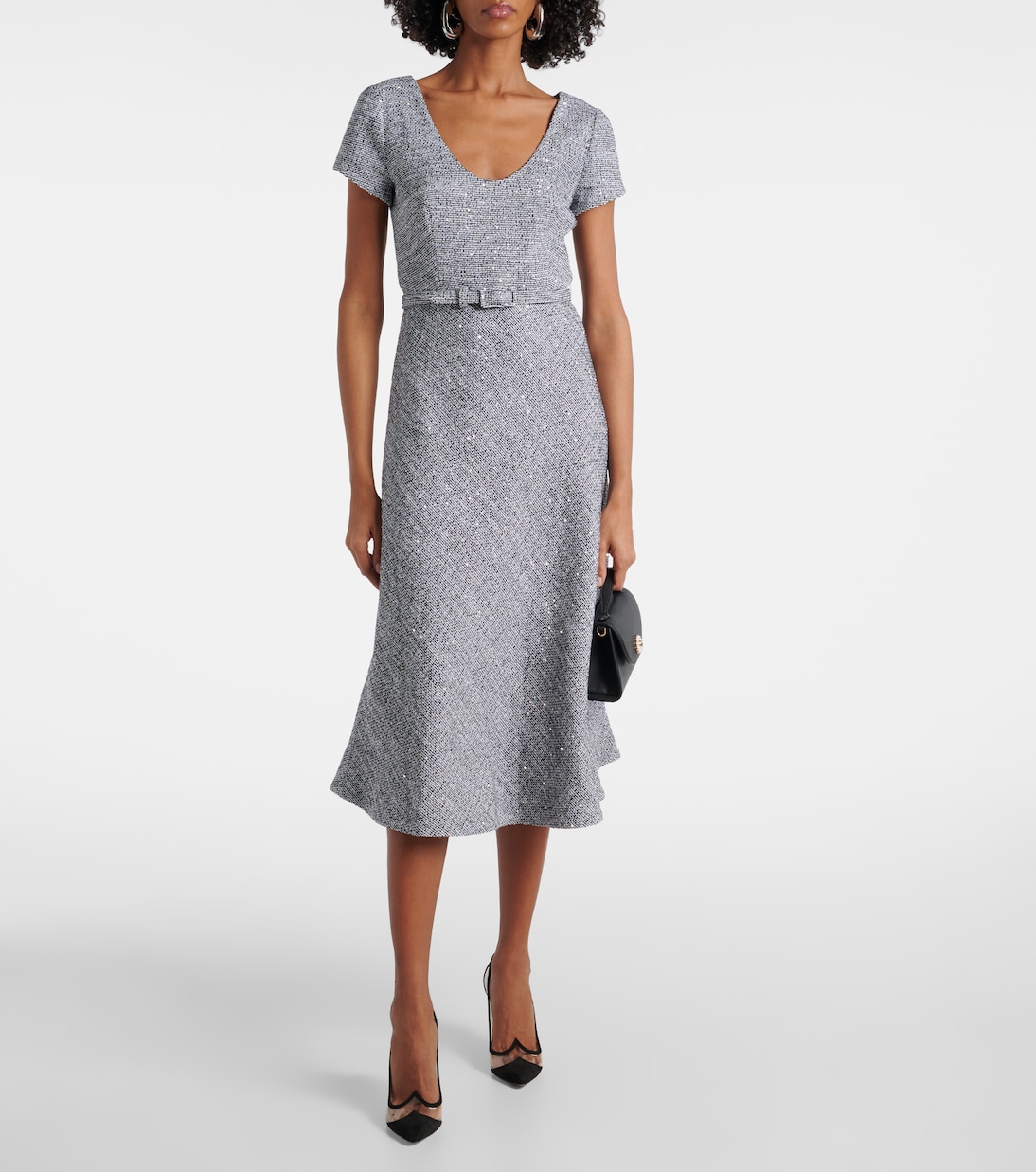 Платье миди из твида с пайетками Alessandra Rich, White Black Melange 158 437₽