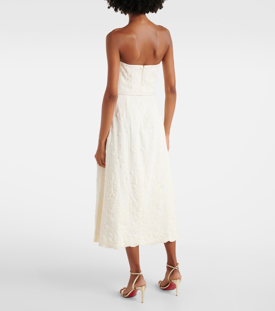 Платье миди из кади с вышивкой Elie Saab, Powder White 207 054₽