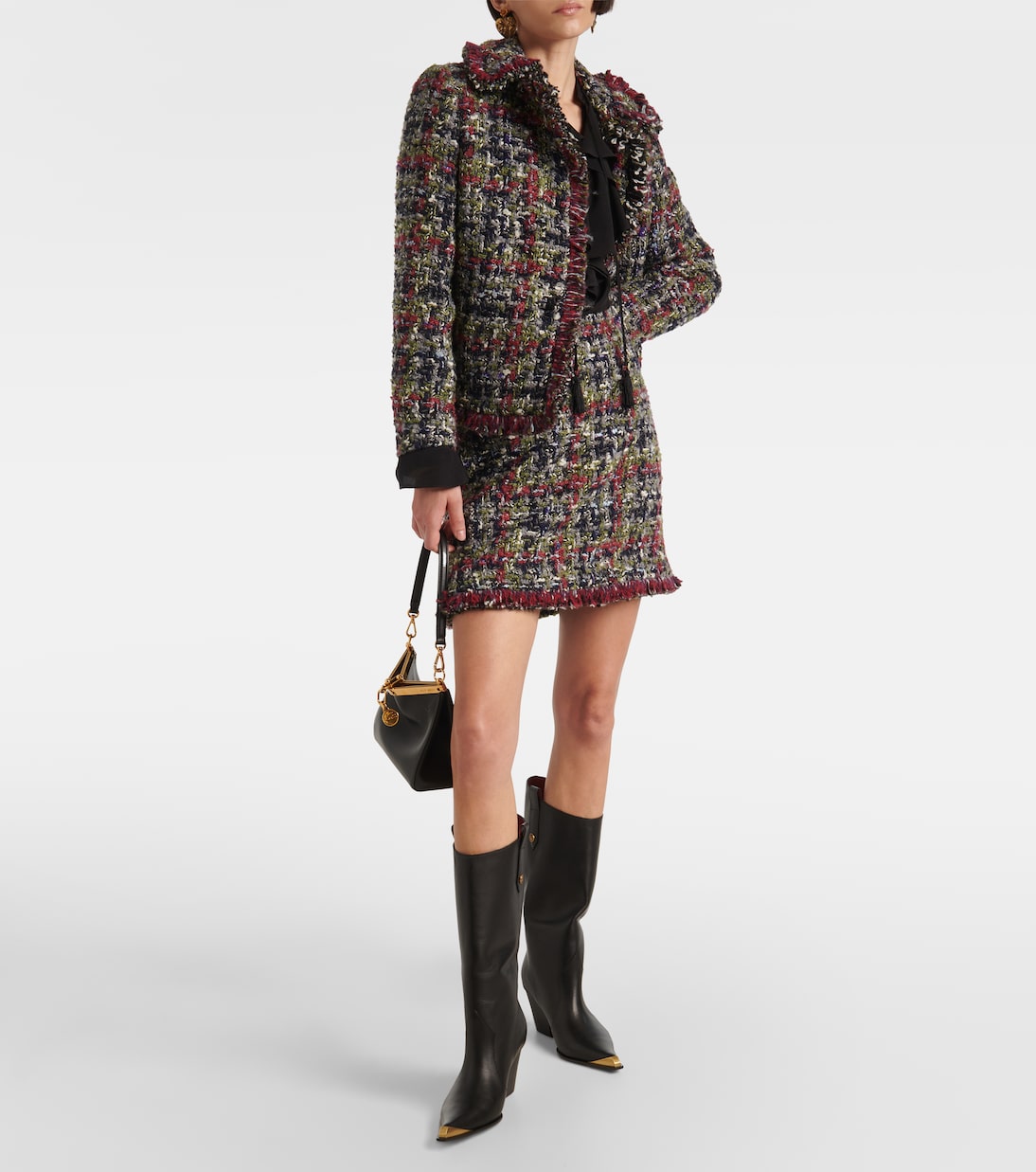 Мини-юбка из твида с добавлением шерсти Etro, Multicolour On Grey Base