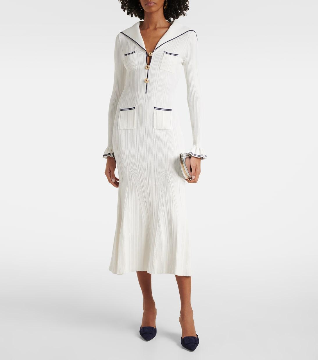 Платье миди из ребристой ткани Self-Portrait, белый