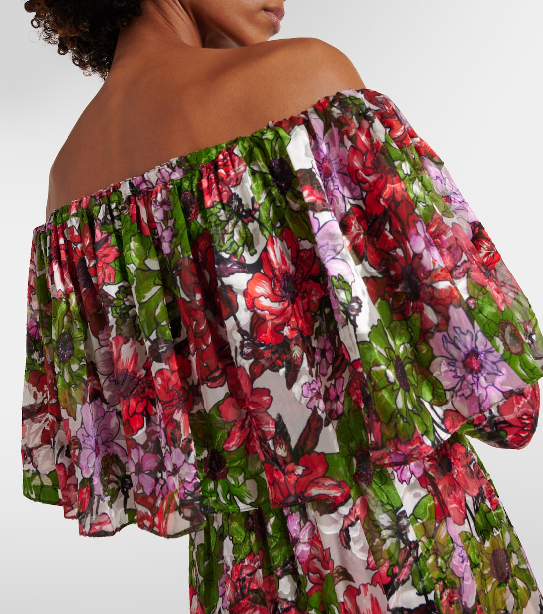 Платье Floria devoré из смесового шелка и шифона Costarellos, Multi-Rose 77 439₽