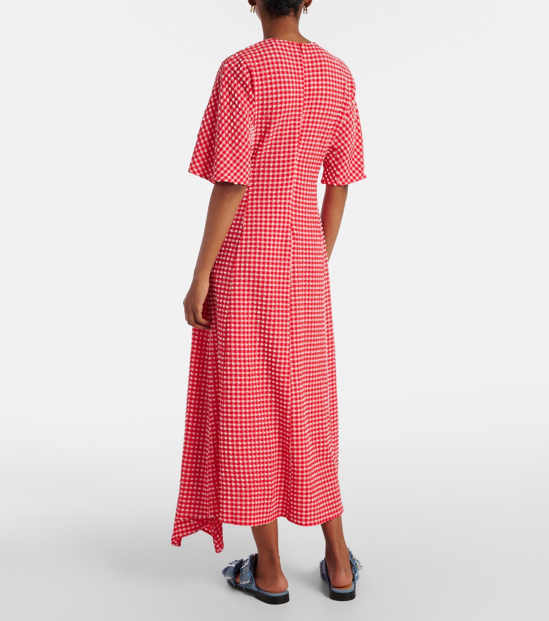 Платье миди из сирсакера Ganni, Racing Red