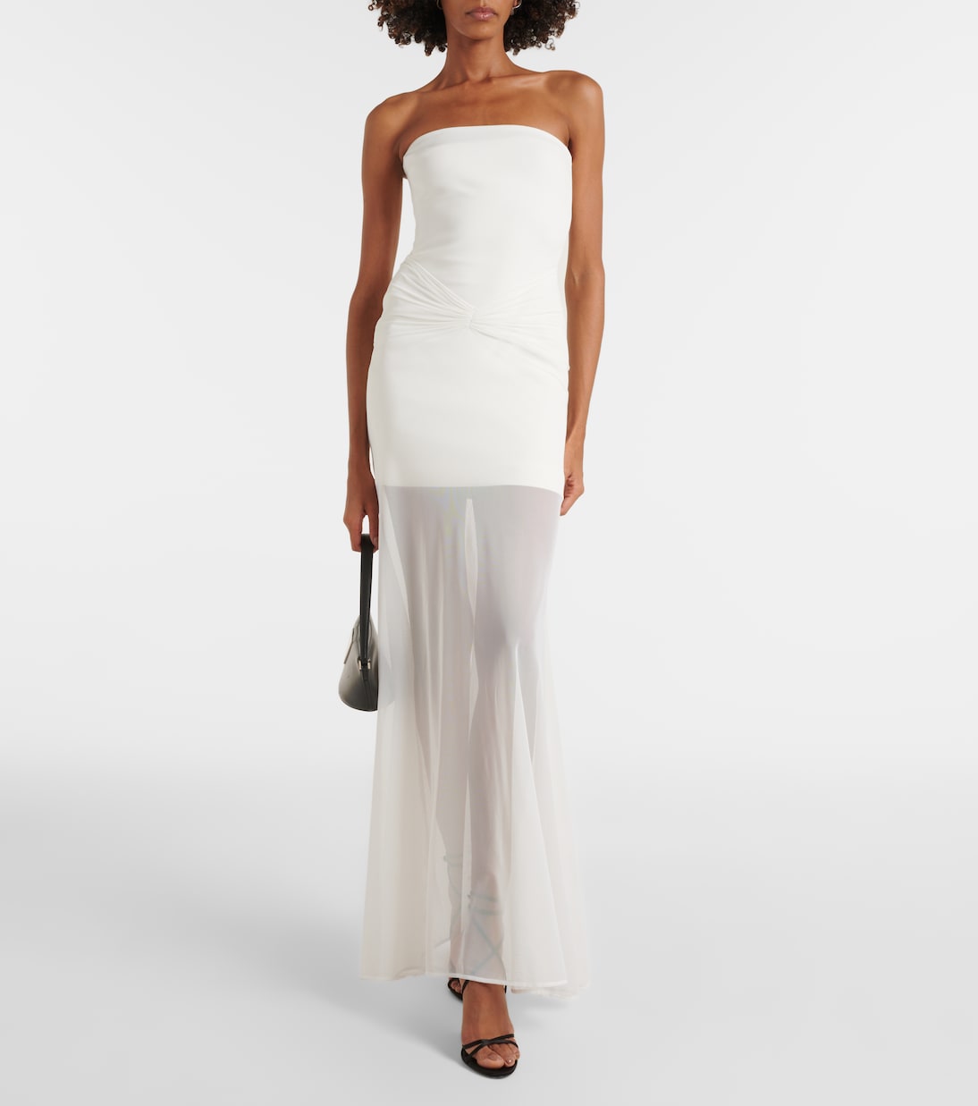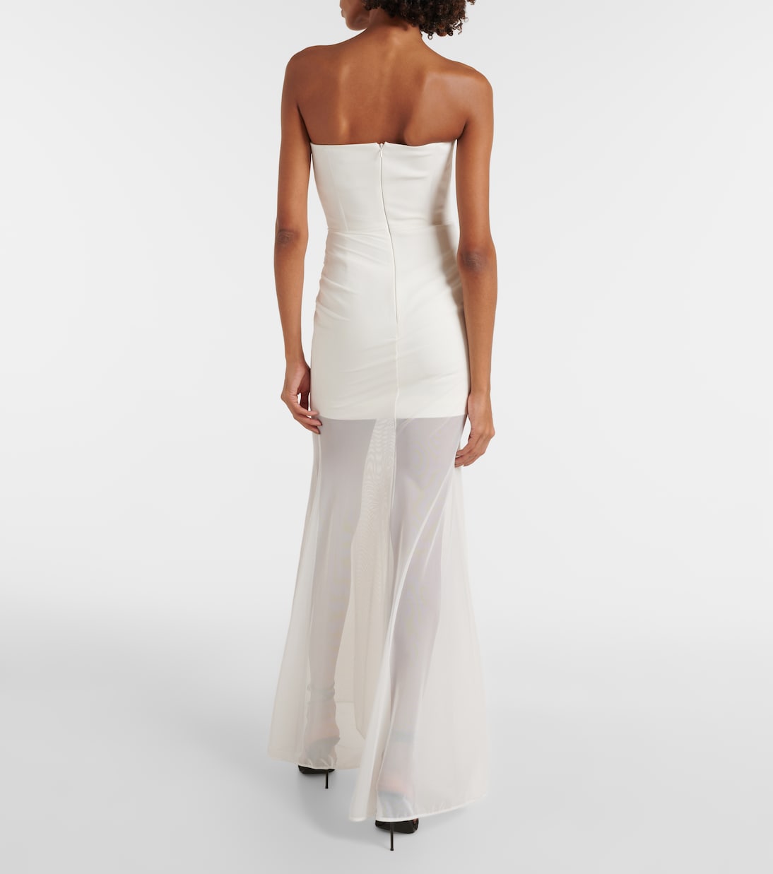 Свадебное платье без бретелек со сборками из кади David Koma, белый