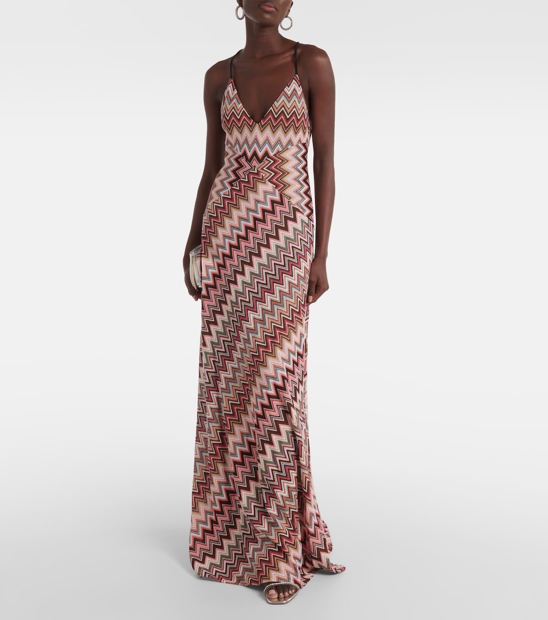 Длинное платье Zig Zag из хлопковой смеси Missoni, Multicolor Red Blk Wht 147 741₽