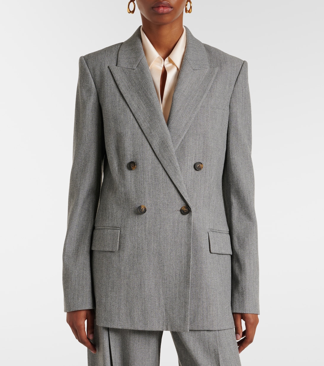 Двубортный блейзер из шерстяной саржи Vince, Dk Stone Grey