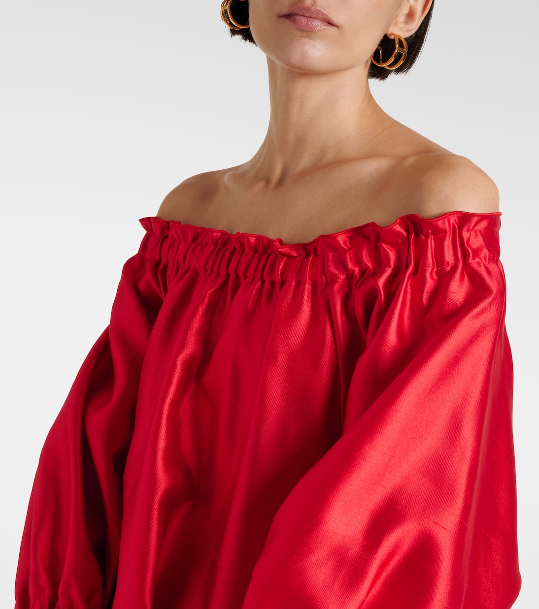 Мини-платье Lepre с открытыми плечами из шелка и хлопка Max Mara, Rosso
