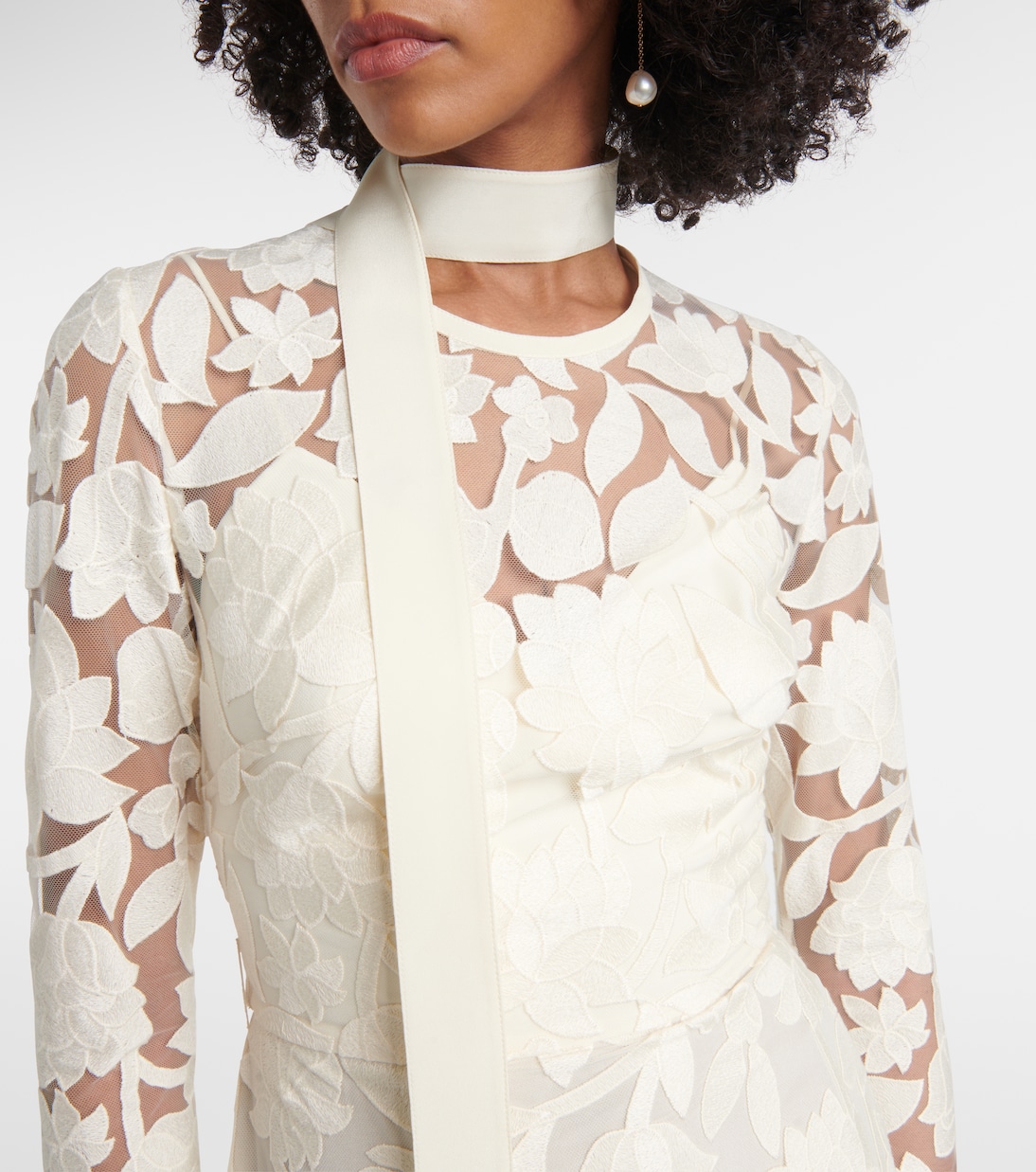 Платье миди из тюля с цветочной вышивкой Elie Saab, белый