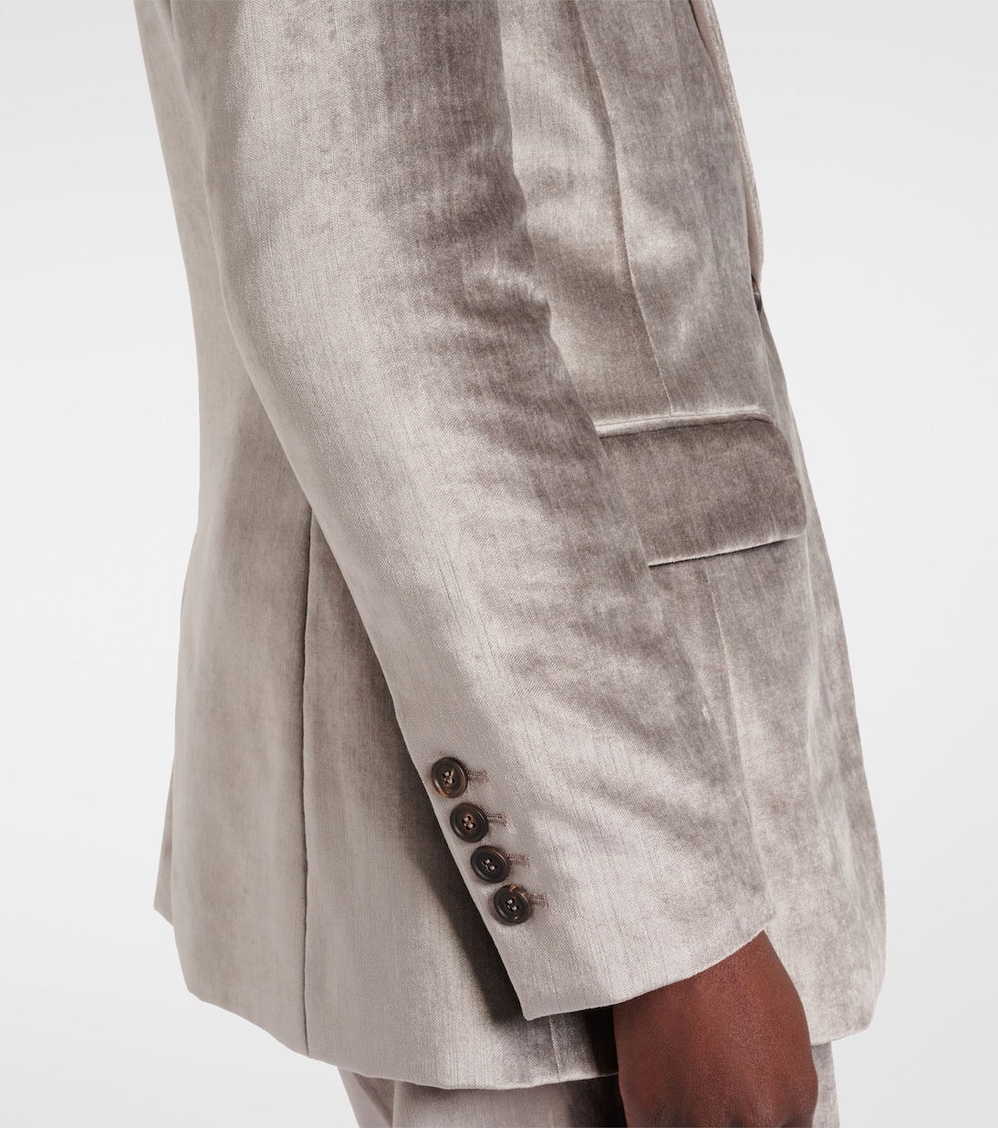 Бархатный блейзер из смесового хлопка Brunello Cucinelli, серый