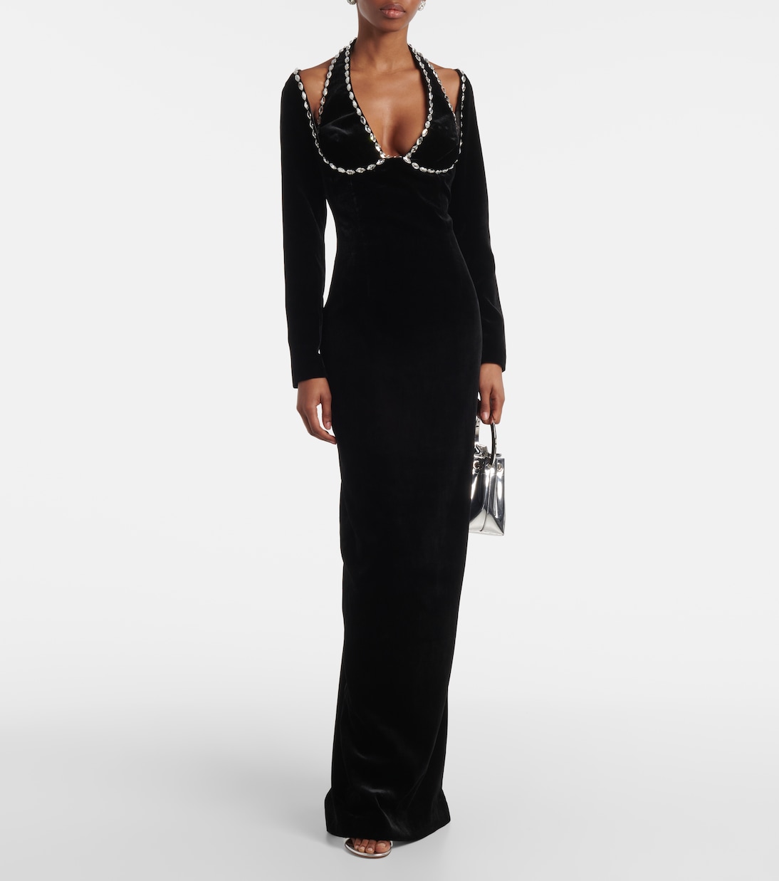 Бархатное платье, украшенное кристаллами Rasario, черный