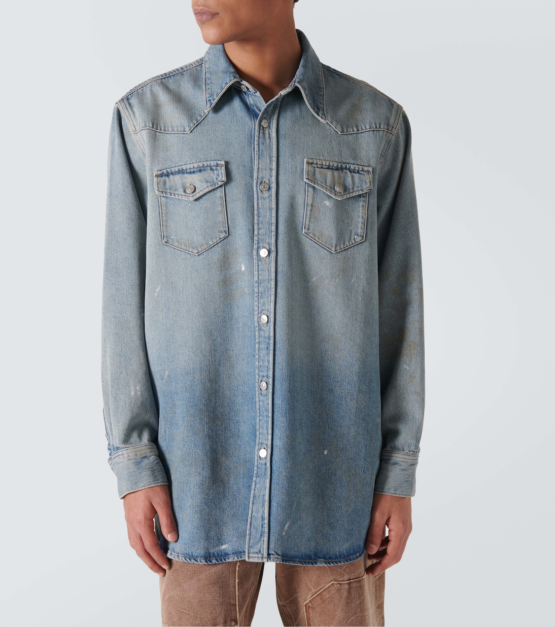 Рубашка из потертого денима Acne Studios, светло-синий