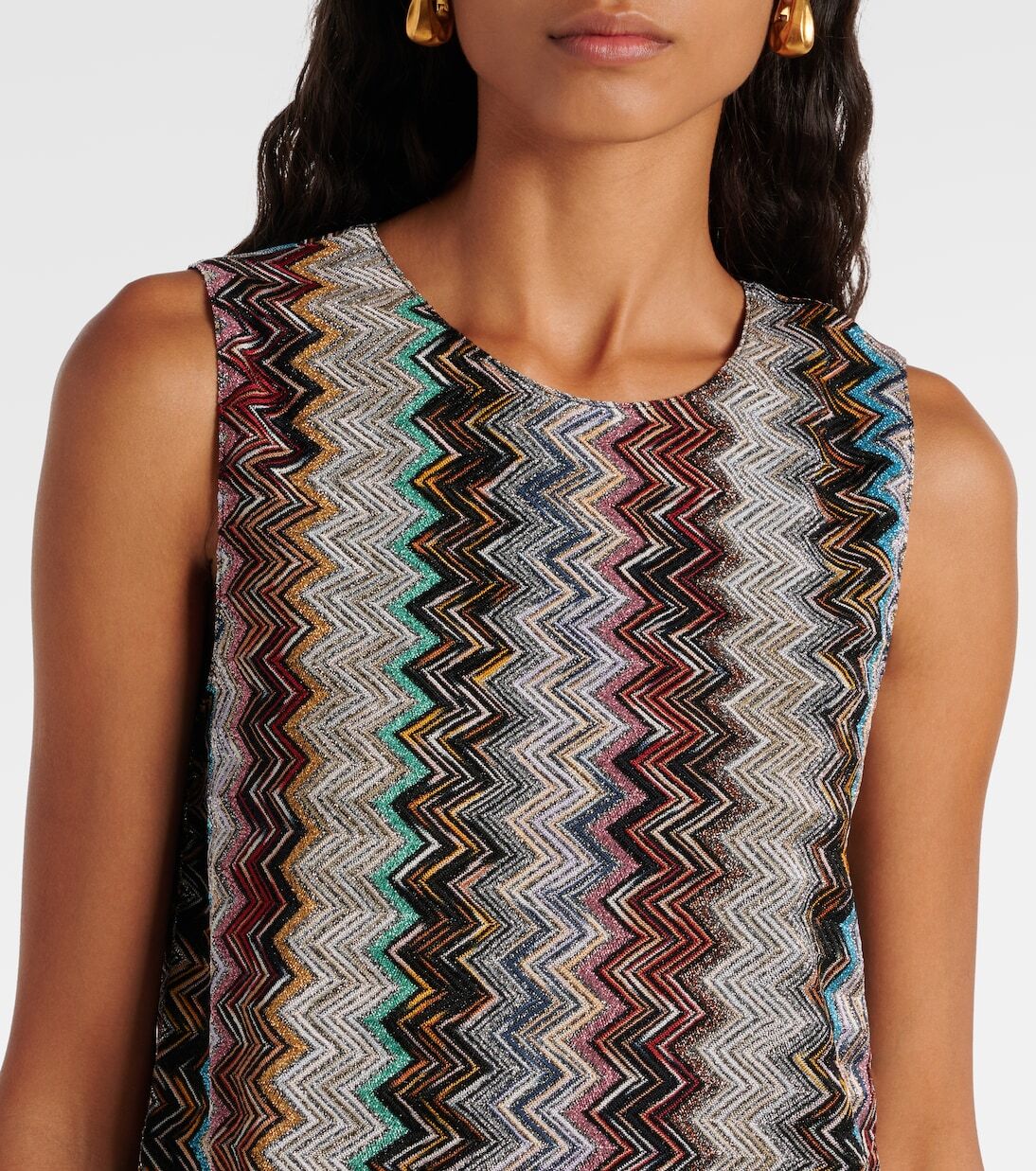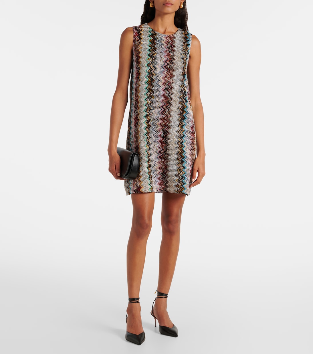 Мини-платье из ламе с зигзагообразным узором Missoni, Multi Silver Black Pink Blue