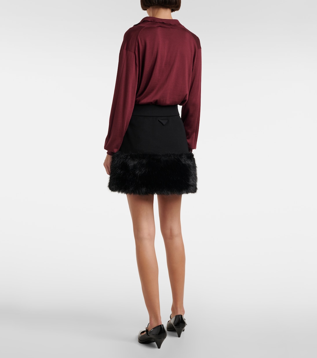 Мини-юбка из смесовой хлопковой ткани Prada, Nero