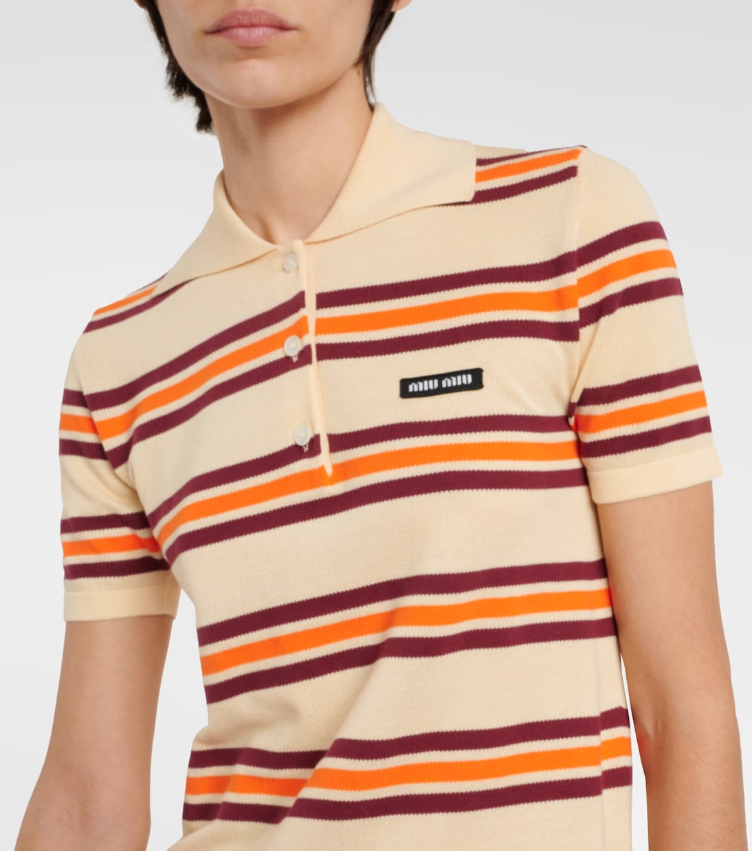 Мини-платье из хлопка и шелка в полоску Miu Miu, Crema
