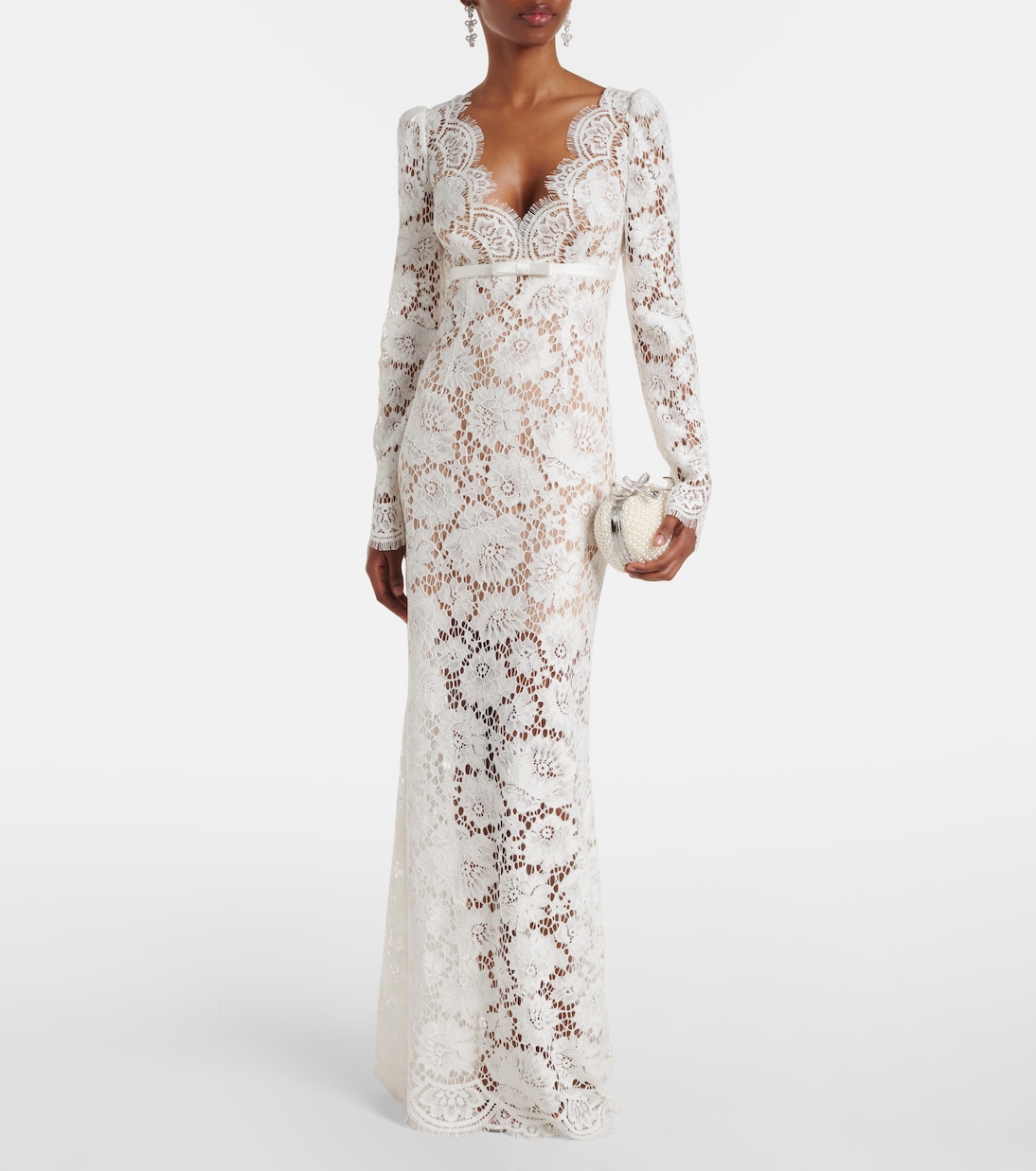 Кружевное платье макси с бантом Self-Portrait, белый 85 984₽