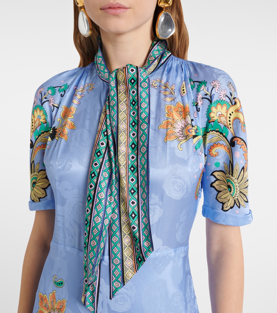 Платье миди из атласа с узором пейсли Etro, Print On Blue Base
