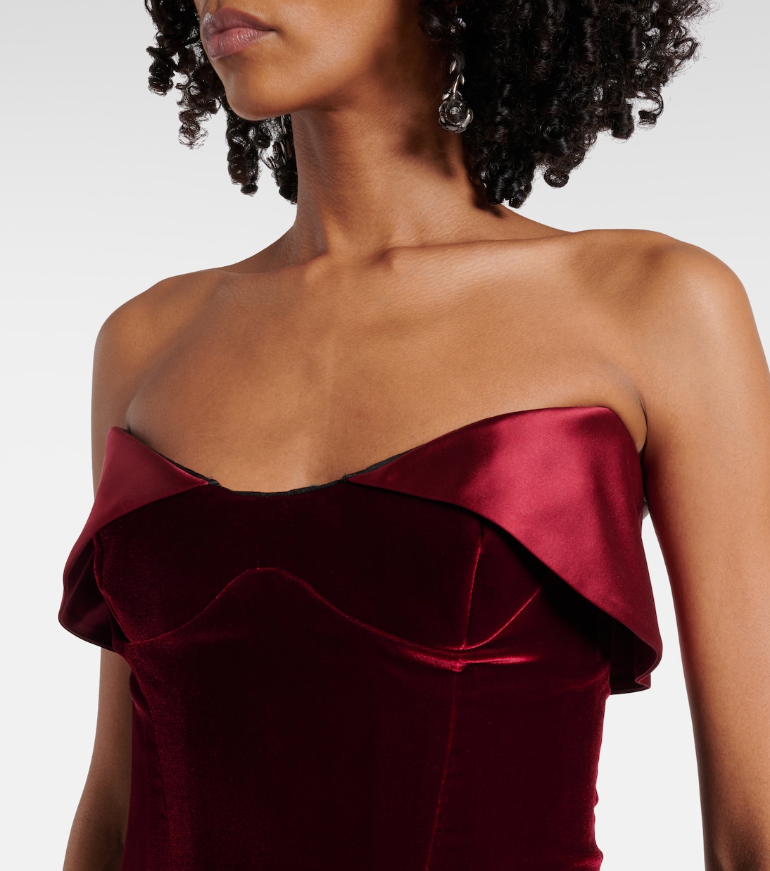 Мини-платье из бархата с атласной отделкой Mugler, Blood Red