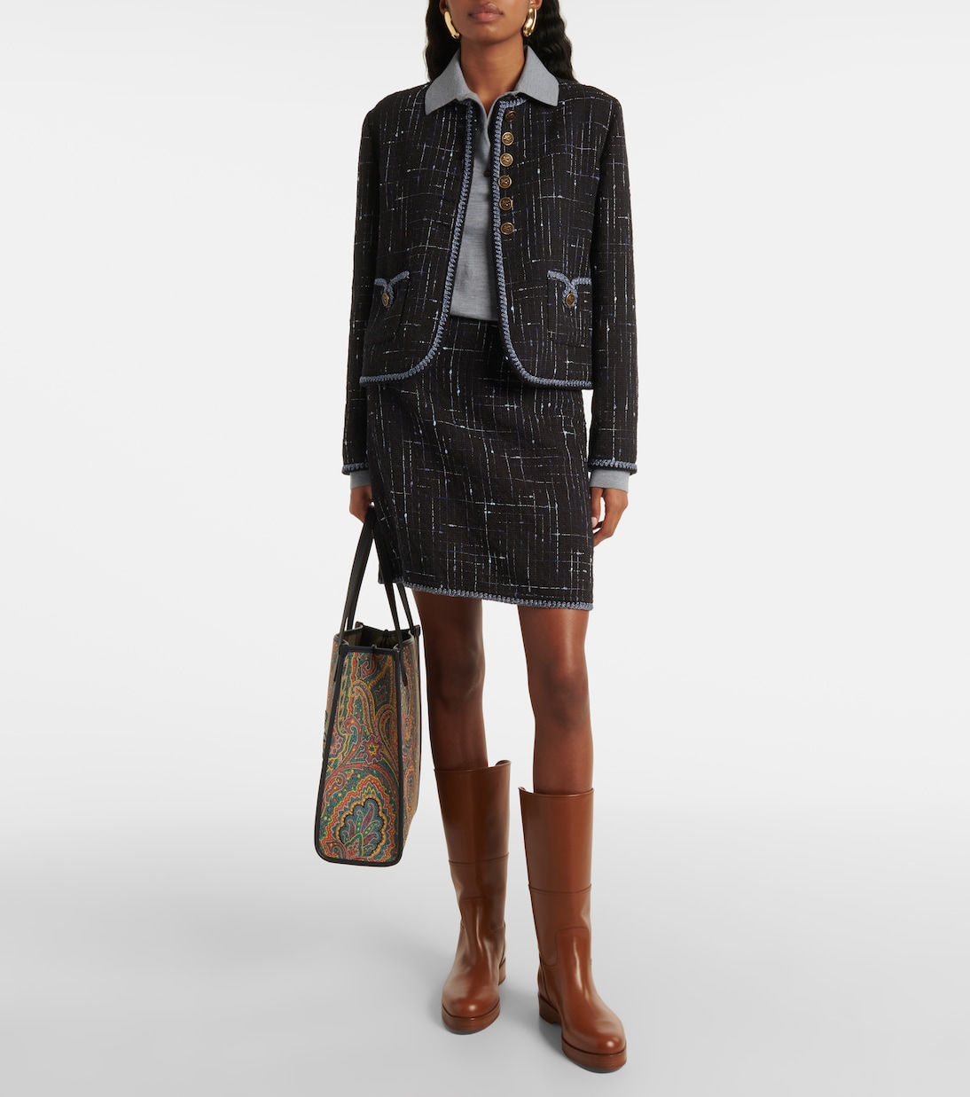 Мини-юбка из твида с добавлением хлопка Etro, синий