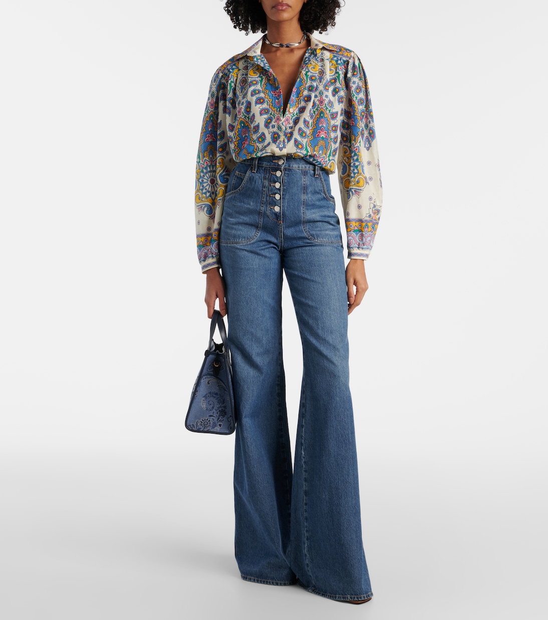 Рубашка из хлопка и шелка с узором пейсли Etro, синий 92 912₽