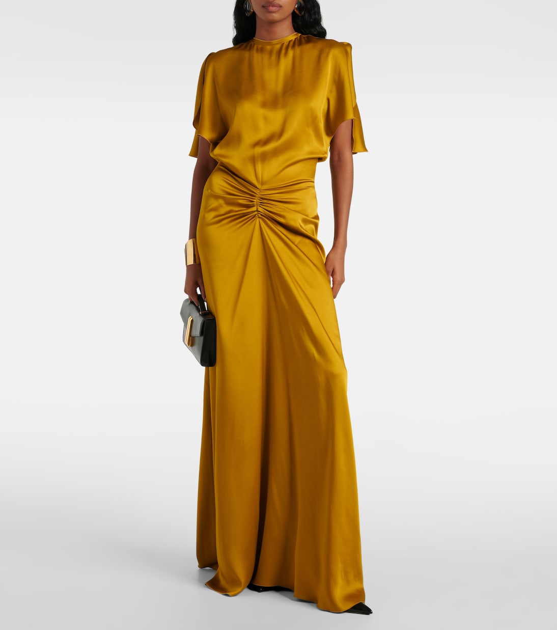 Платье из атласа со сборками Victoria Beckham, Harvest Gold