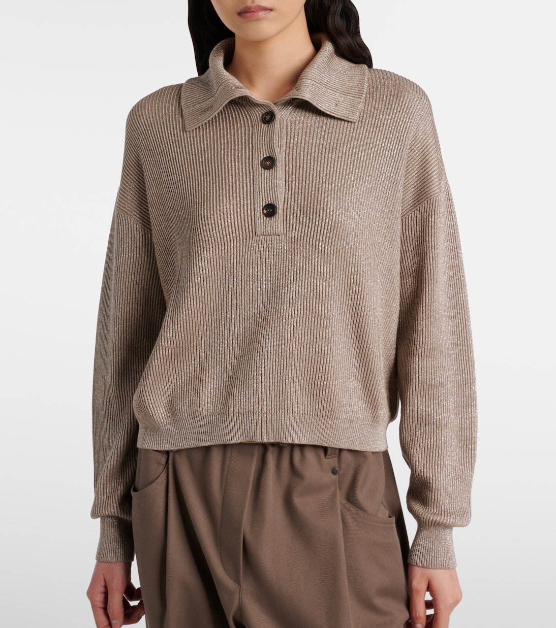 Свитер из смесовой хлопковой ткани Brunello Cucinelli, Nut