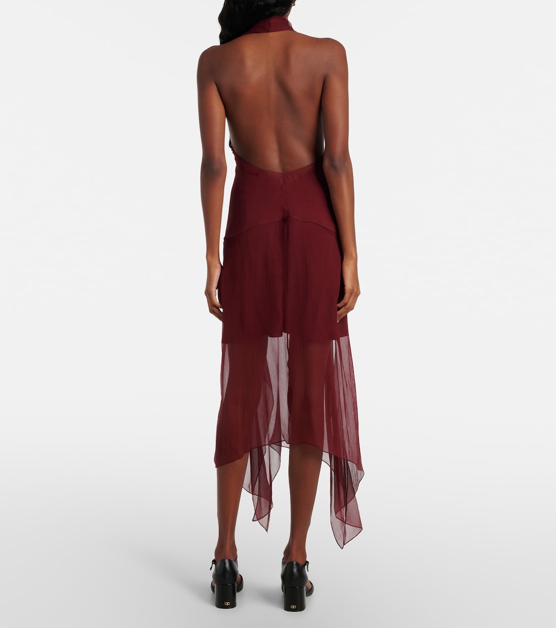 Асимметричное мини-платье из шелкового жоржета Ferragamo, Bordeaux