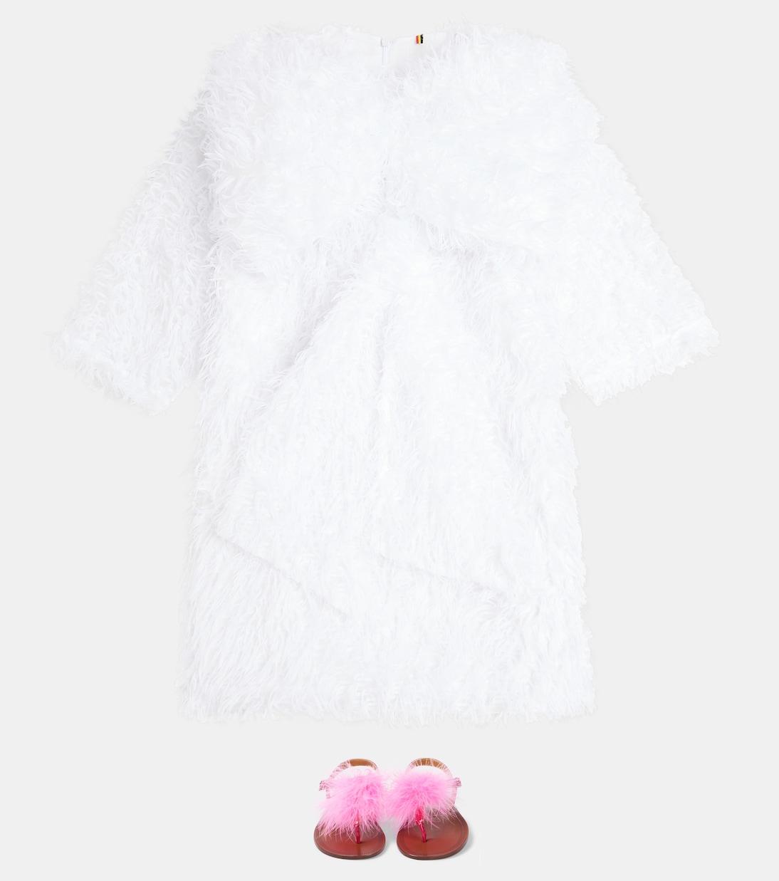 Платье из искусственных перьев с бантом Caroline Bosmans, белый