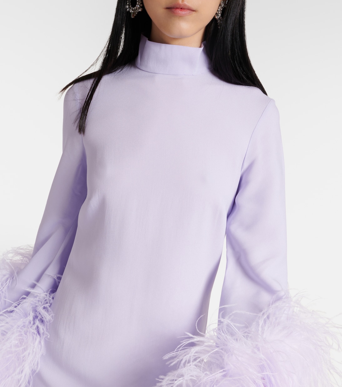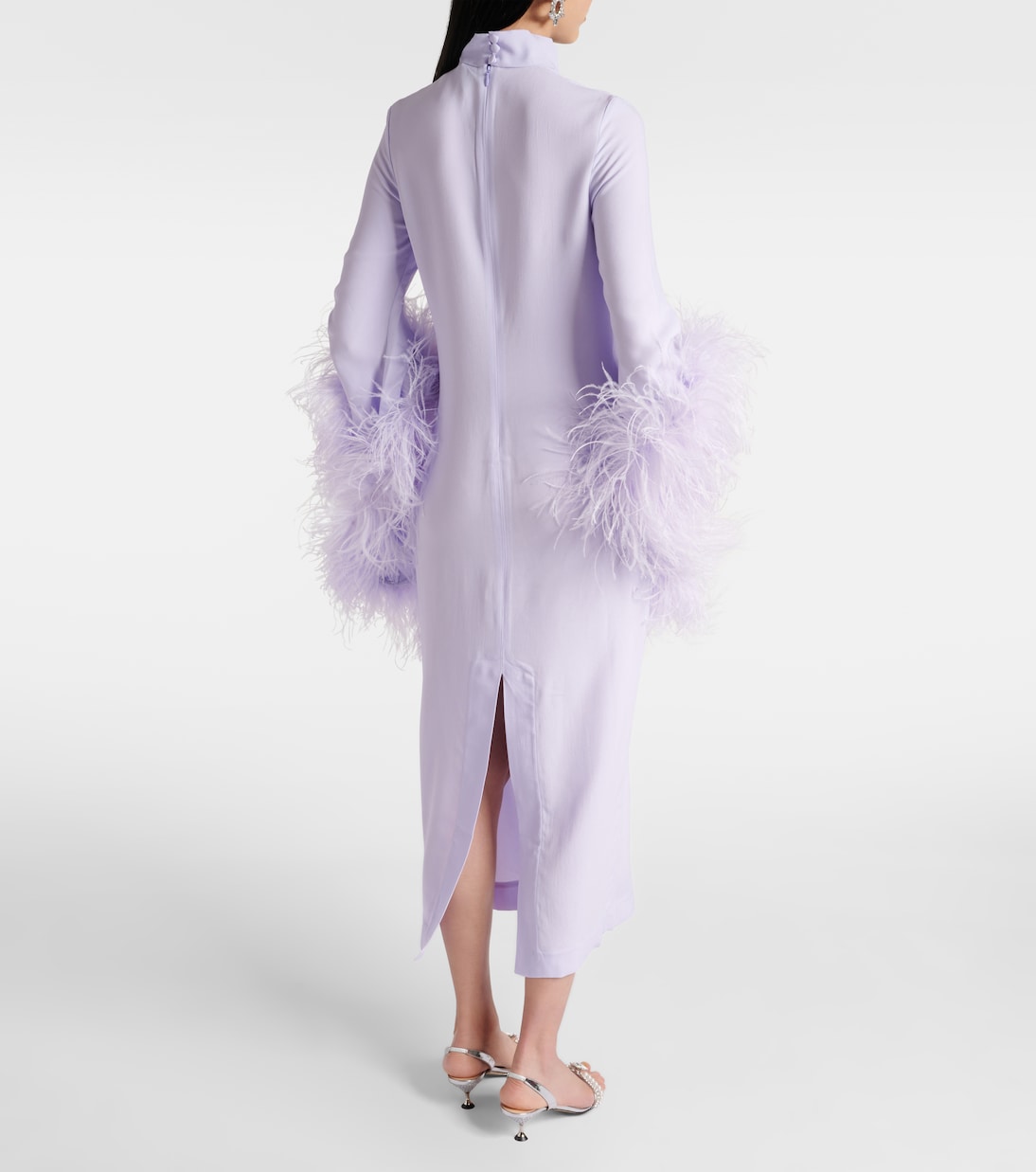 Платье миди из крепа с отделкой из перьев Del Rio Taller Marmo, Perinwinkle