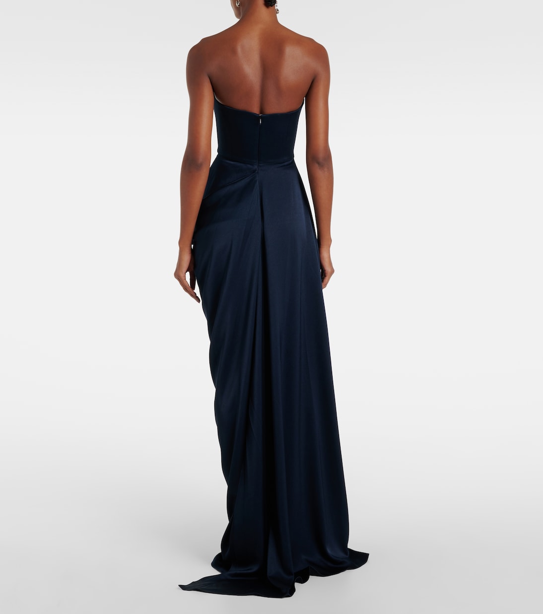 Платье-бюстье из драпированного атласа Alex Perry, темно-синий
