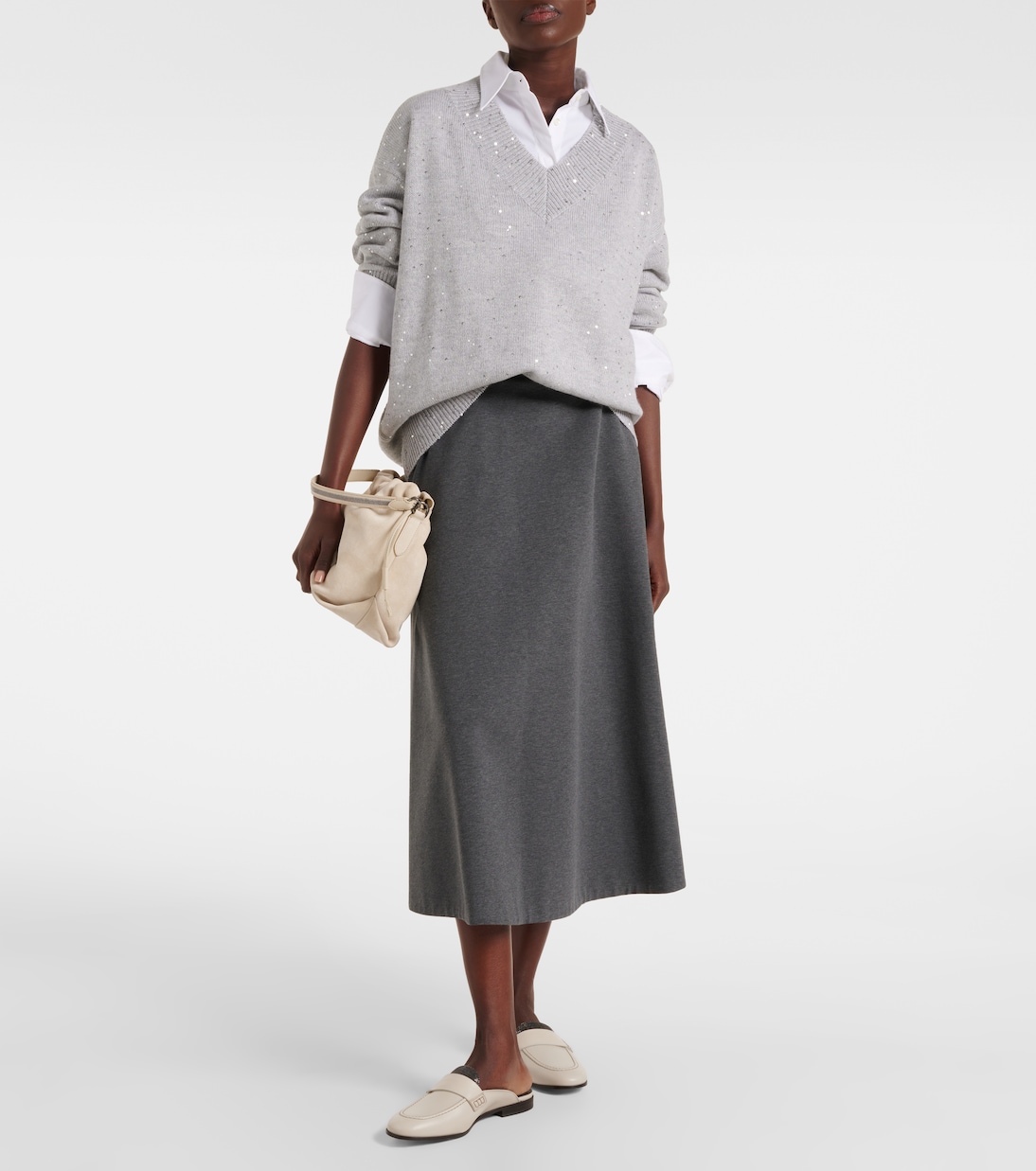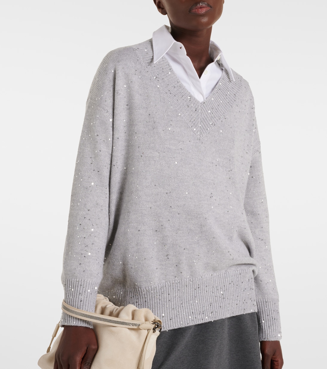 Свитер из кашемира и шелка Brunello Cucinelli, серый
