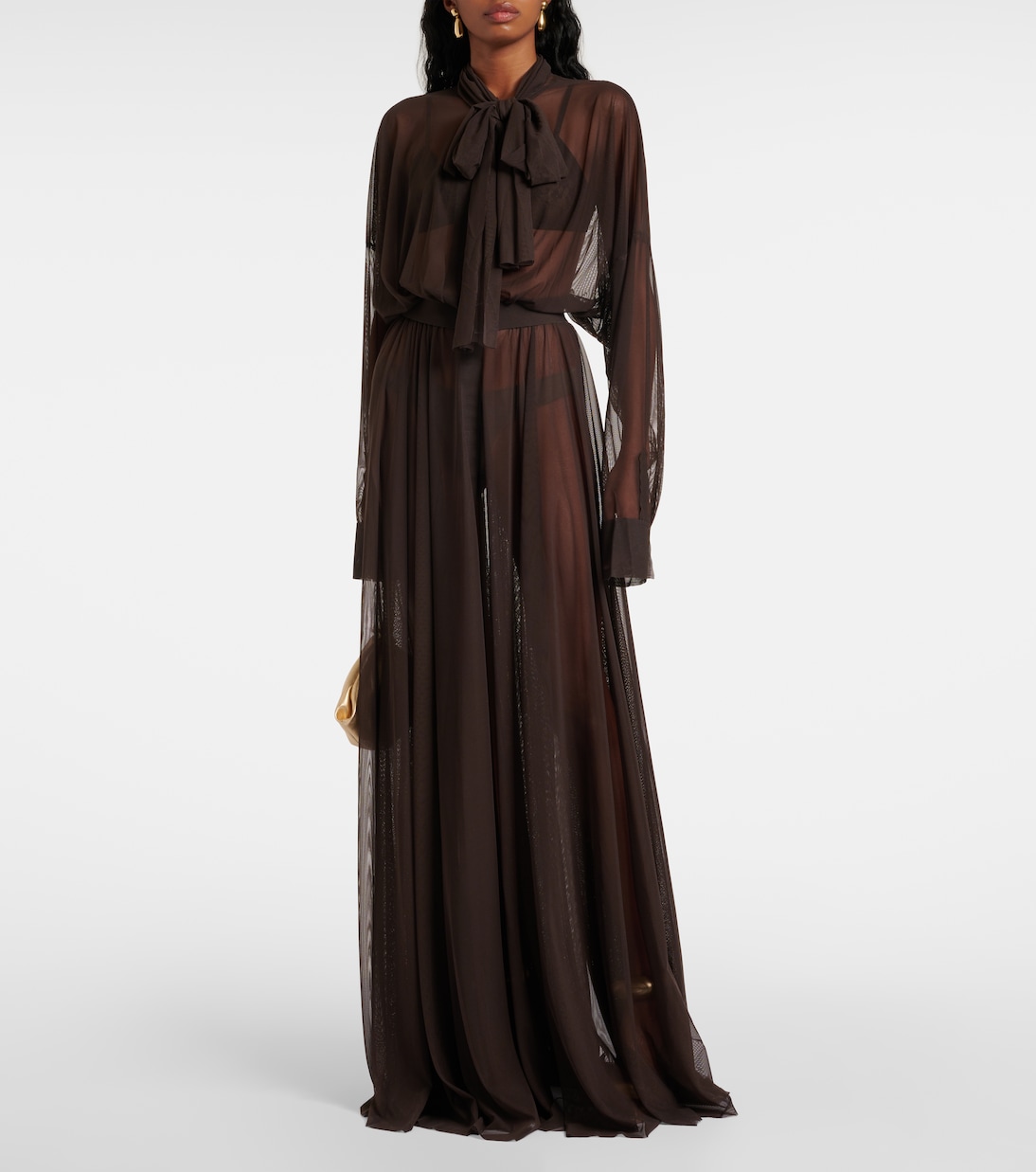 Платье-рубашка из сетки с рукавами-фонариками Norma Kamali, Espresso 59 692₽