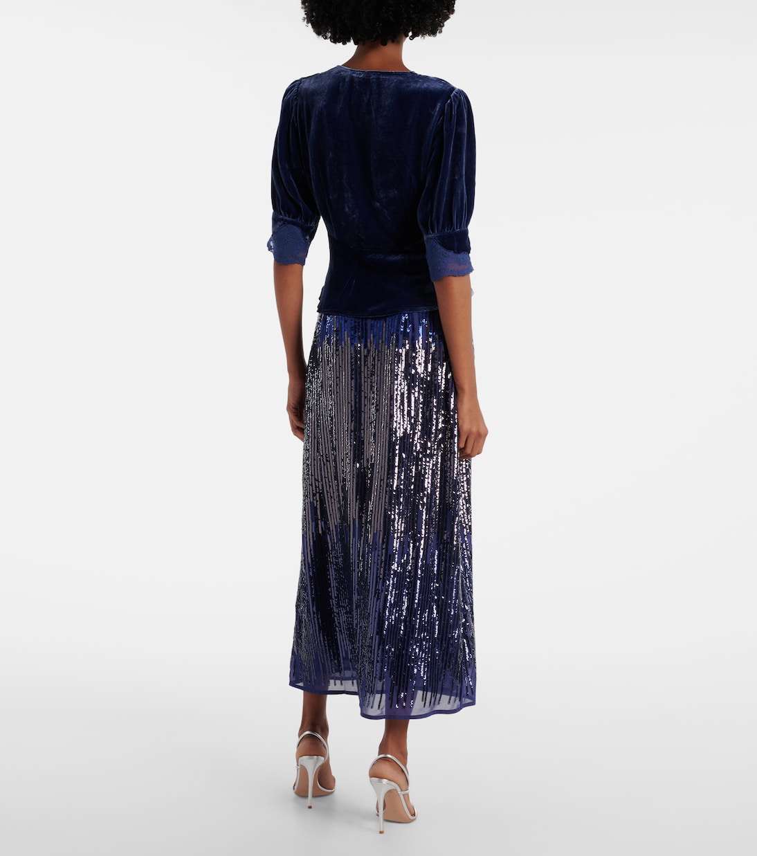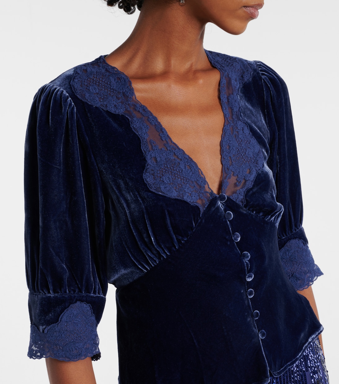 Бархатный топ Аманды с кружевной отделкой Rixo, темно-синий