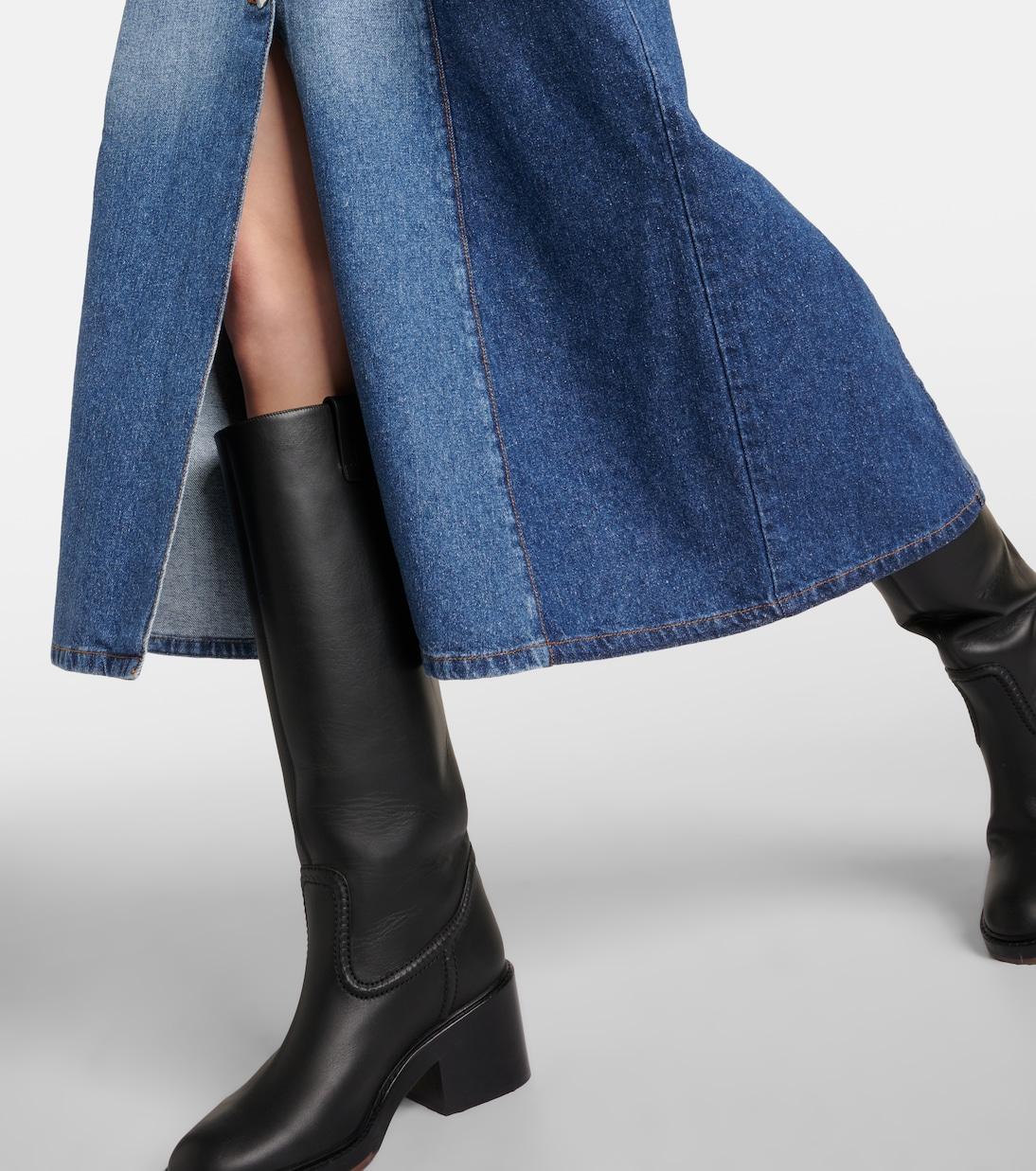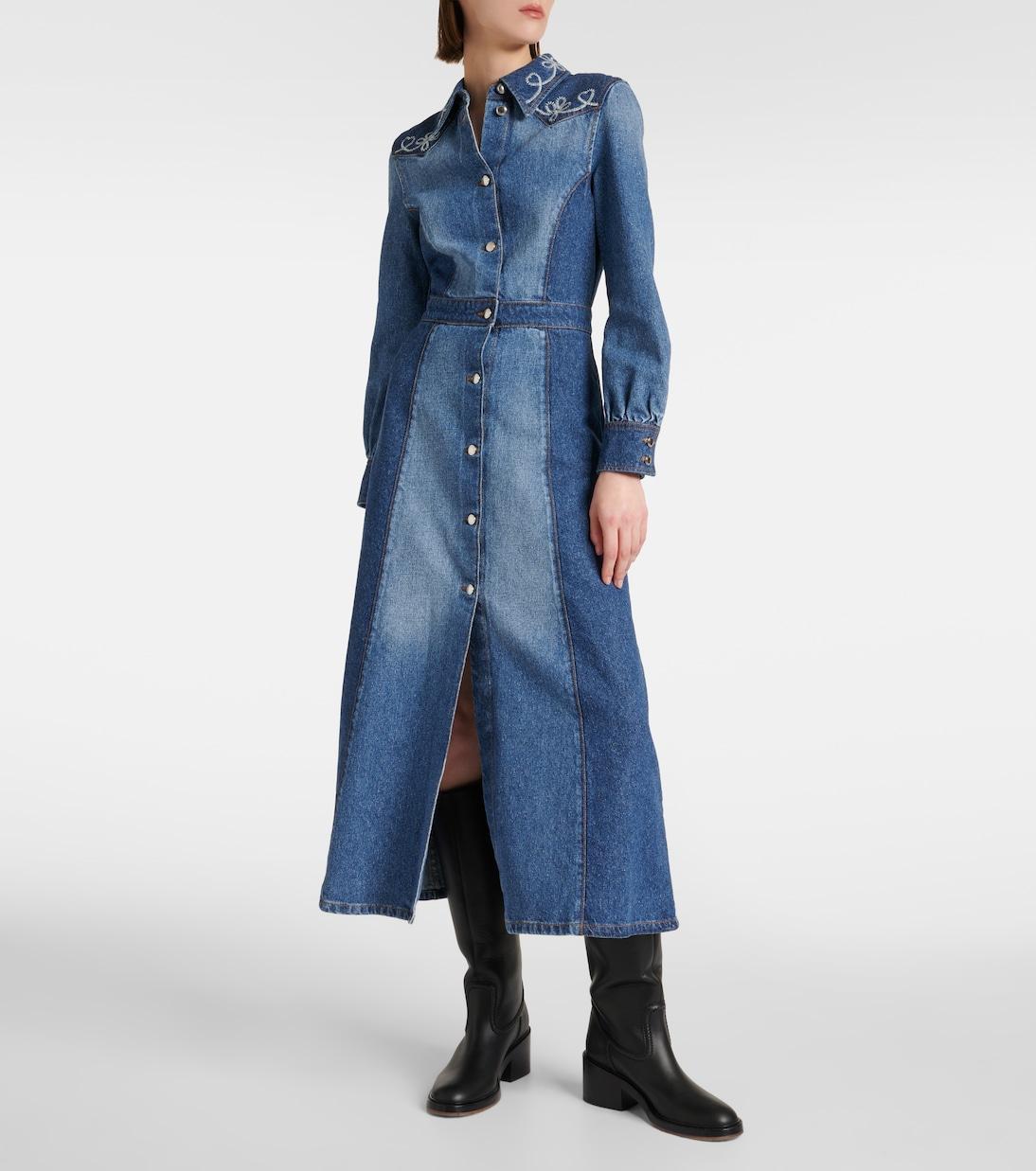 Платье-рубашка из денима с вышивкой Chloé, Multicolor Blue