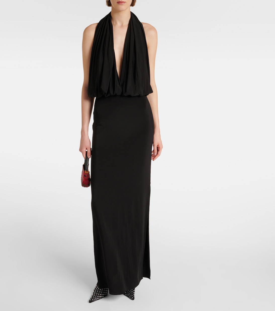 Платье из джерси с драпировкой и халтер-воротом Magda Butrym, черный